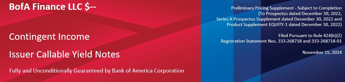 与纳斯达克100指数表现最差挂钩的或有收益发行人可赎回收益率票据®科技板块指数,罗素2000®Index and the VanEck®半导体ETF,将于2029年11月28日到期(“票据”),预计将于2024年11月22日定价,预计将于2024年11月27日发行。