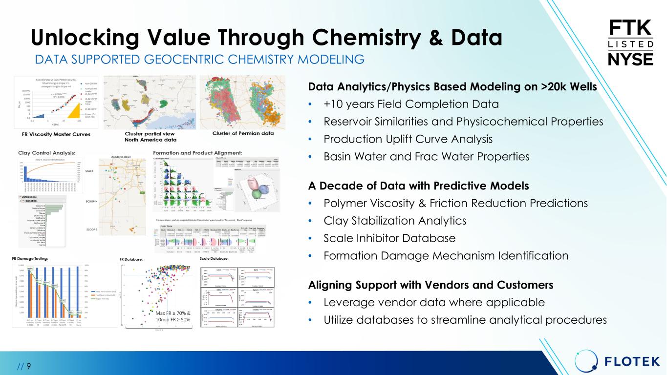 //8 •处方化学管理(PCM)TM •专有能源化学解决方案•经验丰富的化学能源团队•为每口井的地质定制解决方案•来自> 20,000口井的AI驱动分析•实时现场数据以增强性能•现场相关诊断• + 130项专利*数据来源于2019-2023年Enverus Prism平台(1,878口二叠纪井)实现了行业最佳的良好表现26%的产量增长*业绩对比COMPETITION化学技术:竞争优势