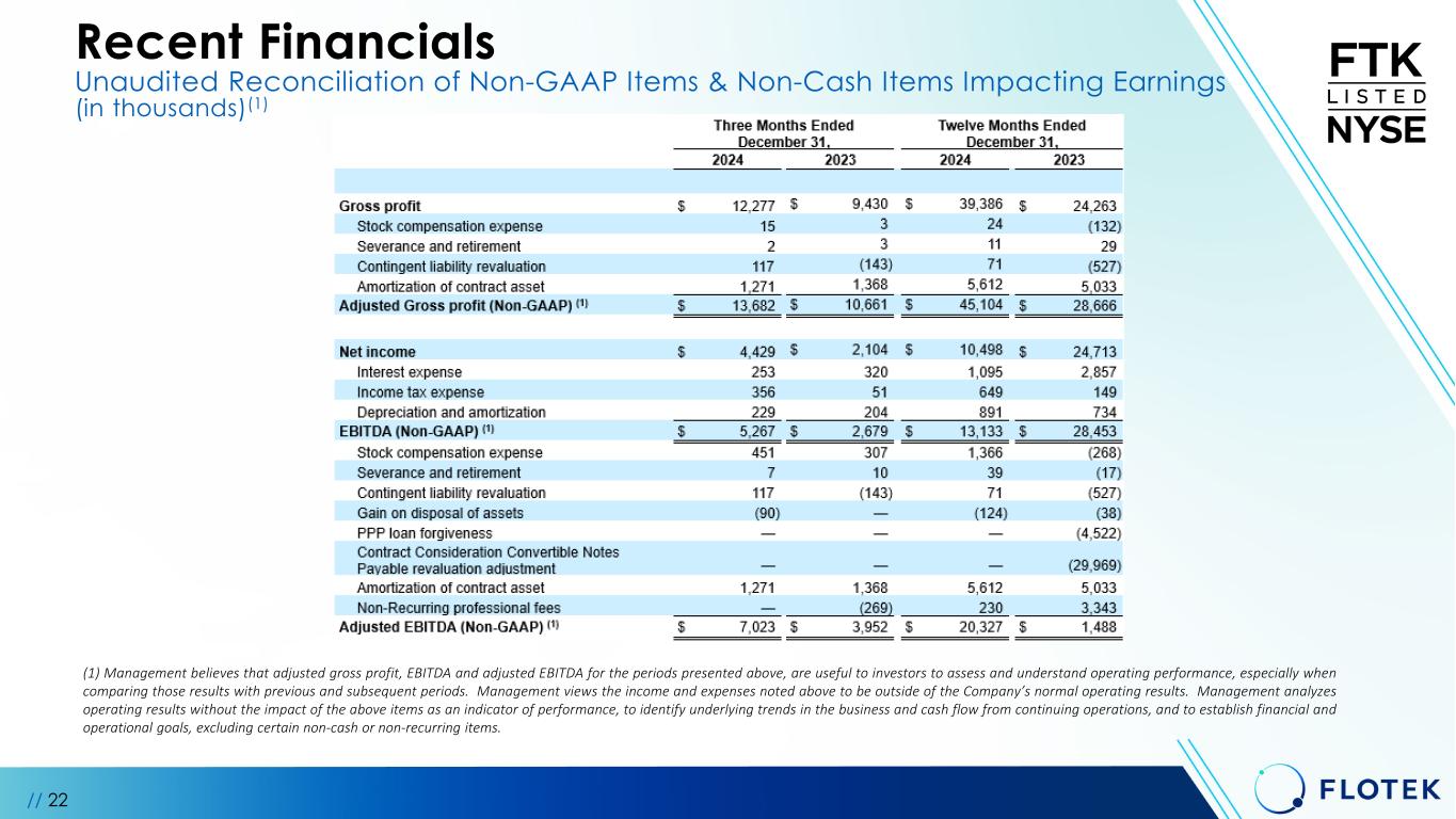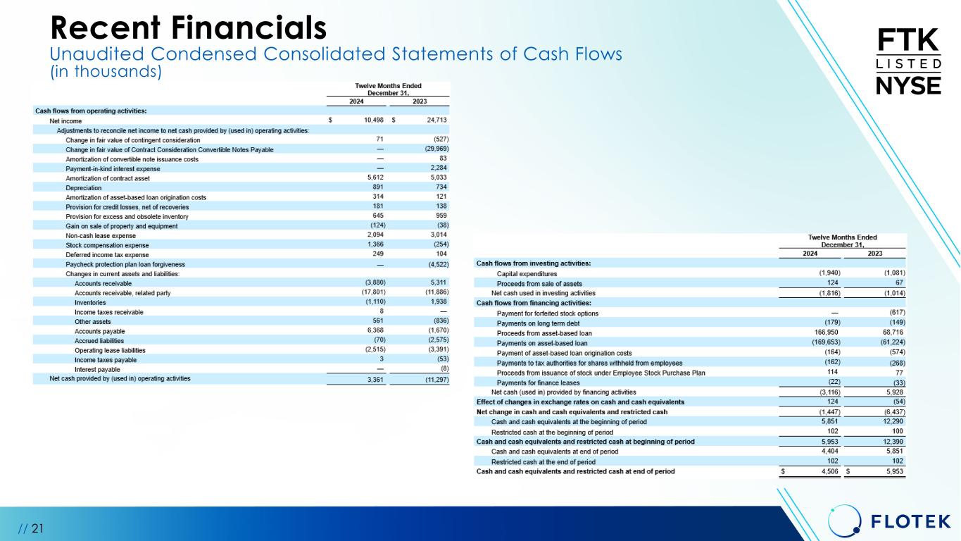 //连续39个季度调整后EBITDA改善*具有高ROI长期‘照付不议’合同的低债务数据分析技术的强大资产负债表隔离风险有形的环境、健康和&,安全影响Flotek工业化学作为共同的价值创造平台通过化学&数据创造价值*调整后EBITDA是一种非GAAP衡量标准。请参阅本演示文稿中的附录,了解与最具可比性的GAAP衡量标准的对账情况