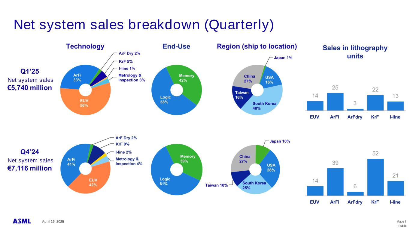 第6页2025年4月16日公1已安装基地管理等于我们的净服务和现场期权销售。2运营收入占总净销售额的百分比。3净预订量包括所有系统销售订单和通胀相关调整,已接受书面授权。为方便读者阅读,Q1业绩摘要数字已四舍五入。2025年第一季度总净销售额77亿欧元净系统销售额57亿欧元已安装基础管理1销售额20亿欧元毛利率54.0%营业利润率235.4%净收入占总净销售额的百分比30.4%每股收益(基本)6.00欧元净预订额339亿欧元,其中EUV预订额12亿欧元