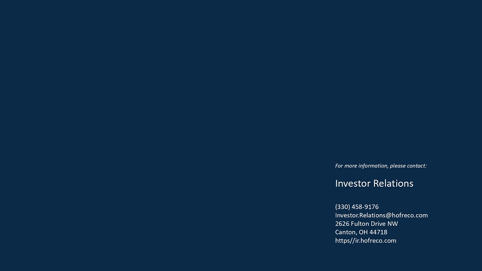 如需更多信息,请联系:投资者关系部(330)458-9176 I n v e s t o r。R el a tio n s @ h o f r e c o.c om 2626 Fulton Drive NW Canton,OH 44718 https://ir.hofreco.com