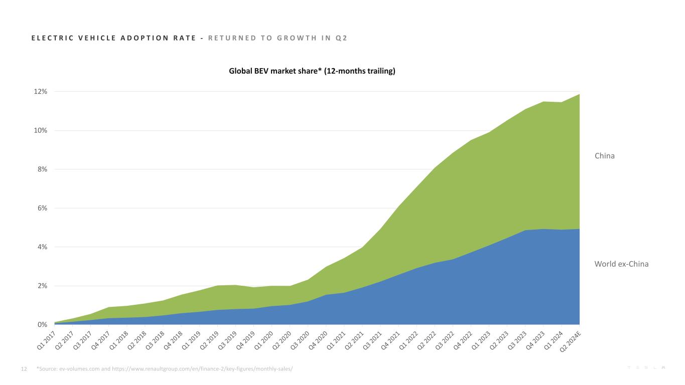 E L E C T R I C V E H I C L E A D O P T I O N R A T E-R E T U R N E D T O G R O W T H I N Q 2全球BEV市场份额*(过去12个月)中国世界(中国除外)*资料来源:ev-volumes.com和https://www.renaultgroup.com/en/finance-2/key-figures/monthly-sales/120%2% 4% 6% 8% 10% 12%
