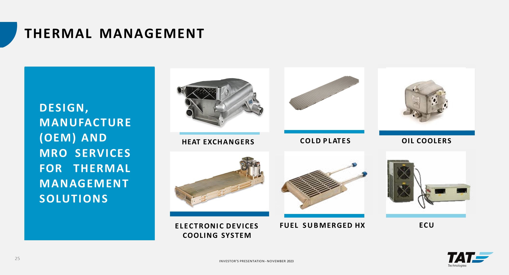 热管理换热器电子设备冷却系统冷板燃料submerged HX油冷却器ECU设计、制造(代工)和用于热管理解决方案的MRO服务25投资者介绍-2023年11月