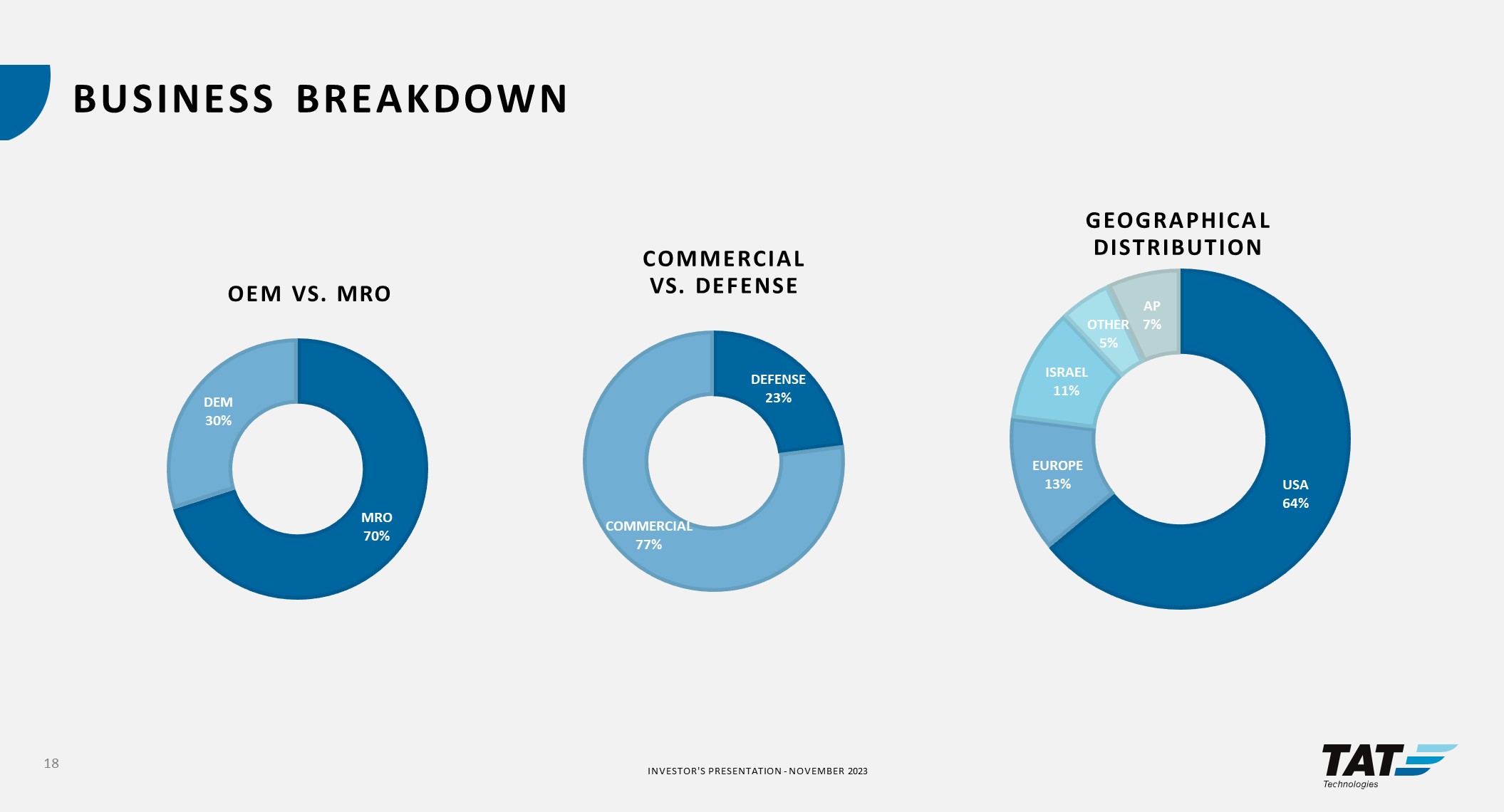 业务细分地域分布商业VS.国防代工VS. MRO 18投资者介绍-2023年11月