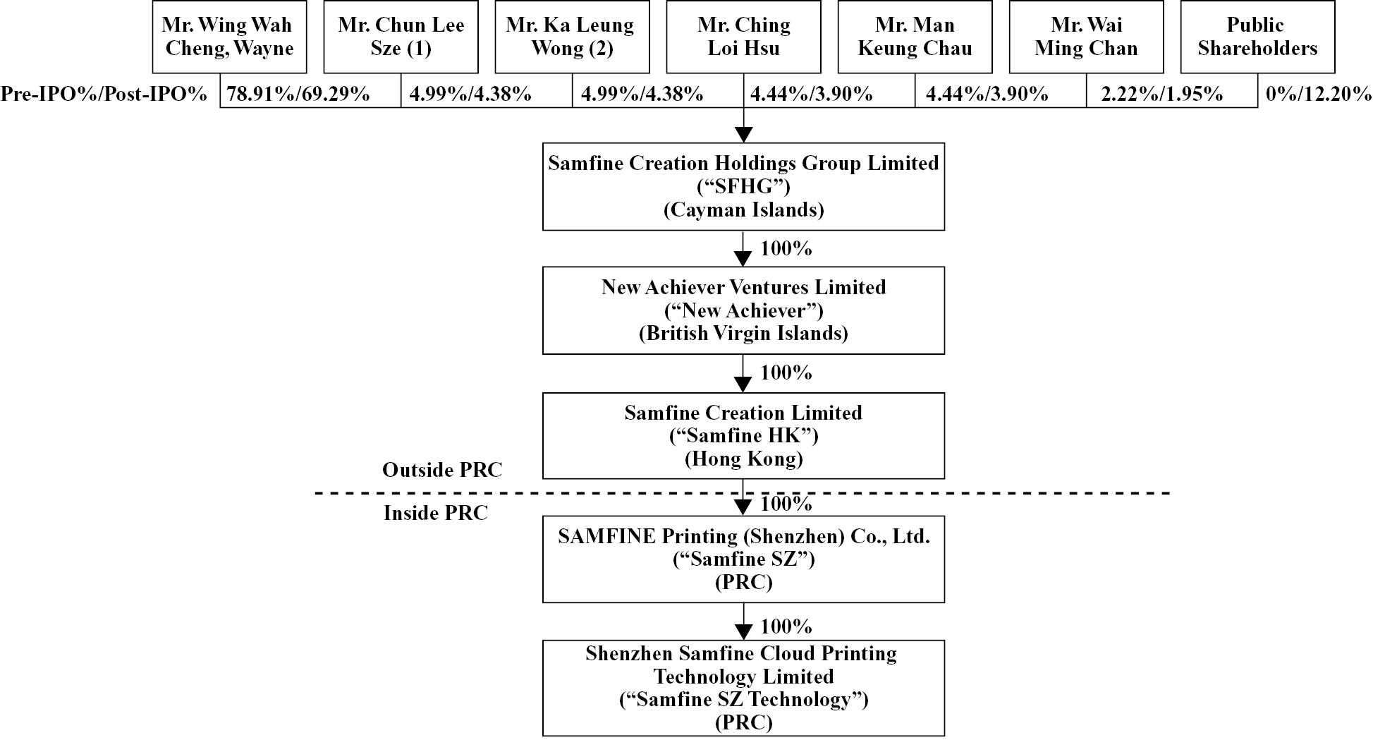 除非另有说明,招股说明书中提及的“公司”、“我们”、“我们”和“我们的”均指SFHG,即将发行本招股说明书中发售的普通股的开曼群岛实体。“我们在中国的运营子公司”指的是三丰科技和三丰科技。尽管我们在Samfine SZ的所有权权益是通过BVI和香港的中间公司持有的,并且我们目前没有或打算与中国的任何实体建立可变利益实体(“VIE”)结构的任何合同安排,但我们经营所依据的结构涉及投资者的独特风险。请参阅本招募说明书第20页开始的“风险因素”,以了解公司和此次发行因这种结构而面临的风险的讨论。