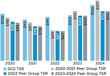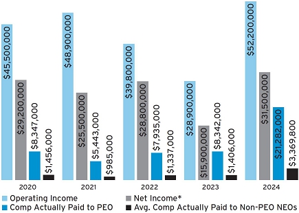 2024年是杜科蒙的175第周年作为美国加州历史最悠久的持续运营公司和我想亲自感谢我们所有的股东,感谢他们对公司成功的支持和贡献!管理层在其面向投资者的VISION 2027游戏计划中的目标方面取得了出色的进展,继续巩固其在强大的运营领导力和审慎的成本管理方面所展示的业绩记录。这包括提高工程产品和售后市场内容的收入百分比,扩大我们在关键商业航空航天平台的存在,执行我们的国防素数卸载战略,巩固我们的设施足迹,并将我们的净收入占净收入的百分比扩大到4%,调整后的EBITDA占净收入的百分比扩大到约15%。因此,我们的股东受益于股价上涨22%、市值同比增长24%、创下约7.866亿美元的新的历史年度收入记录、利润率提高以及相对总股东回报率继续持续优于我们代理人才同行群体中的其他人。我还要欢迎我们最新的董事会成员Daniel Korte和Daniel Boehle加入公司。凭借他们卓越的运营和财务专业知识,我们对他们为董事会带来的全新视角感到兴奋。Dean Flatt和Robert 杜科蒙先生都将在今年的年会上退休,我谨代表我们的股东对他们多年来为董事会提供的宝贵服务表示由衷的感谢。再次感谢我们的股东对公司的支持,在我们继续执行VISION 2027战略的过程中,我们对未来的独特价值创造机会感到无比兴奋!