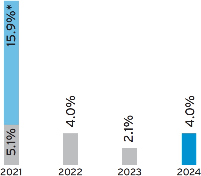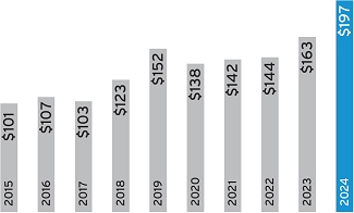 | 2024 | 2023 | 2022 | 2021 | 2020 | 2019 | 2018 | 2017 | 2016 | 2015 | |||||||||||||||||||||||||||||||