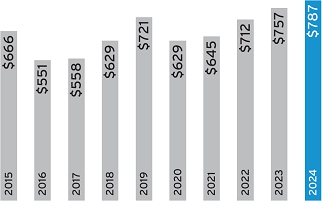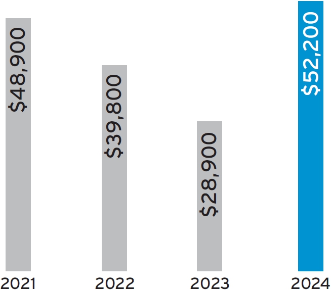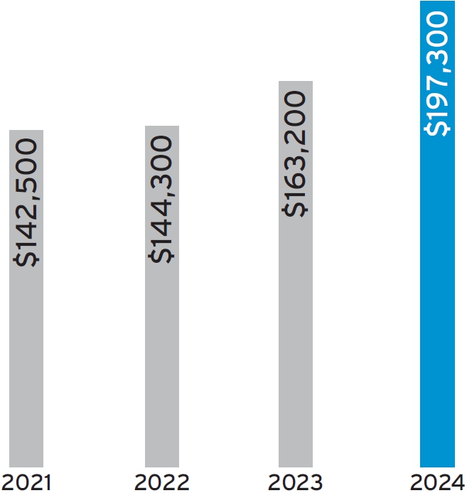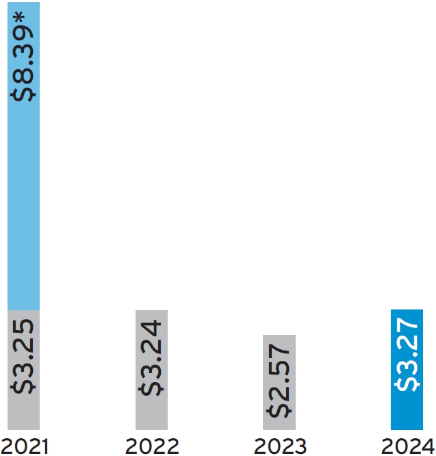 | (1) | 2024年数据基于截至2024年12月31日的14,781,218股流通股和63.66美元/股的收盘价。 |