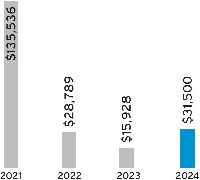 | 2024 | 2023 | 2022 | 2021 | 2020 | ||||||||||||||||