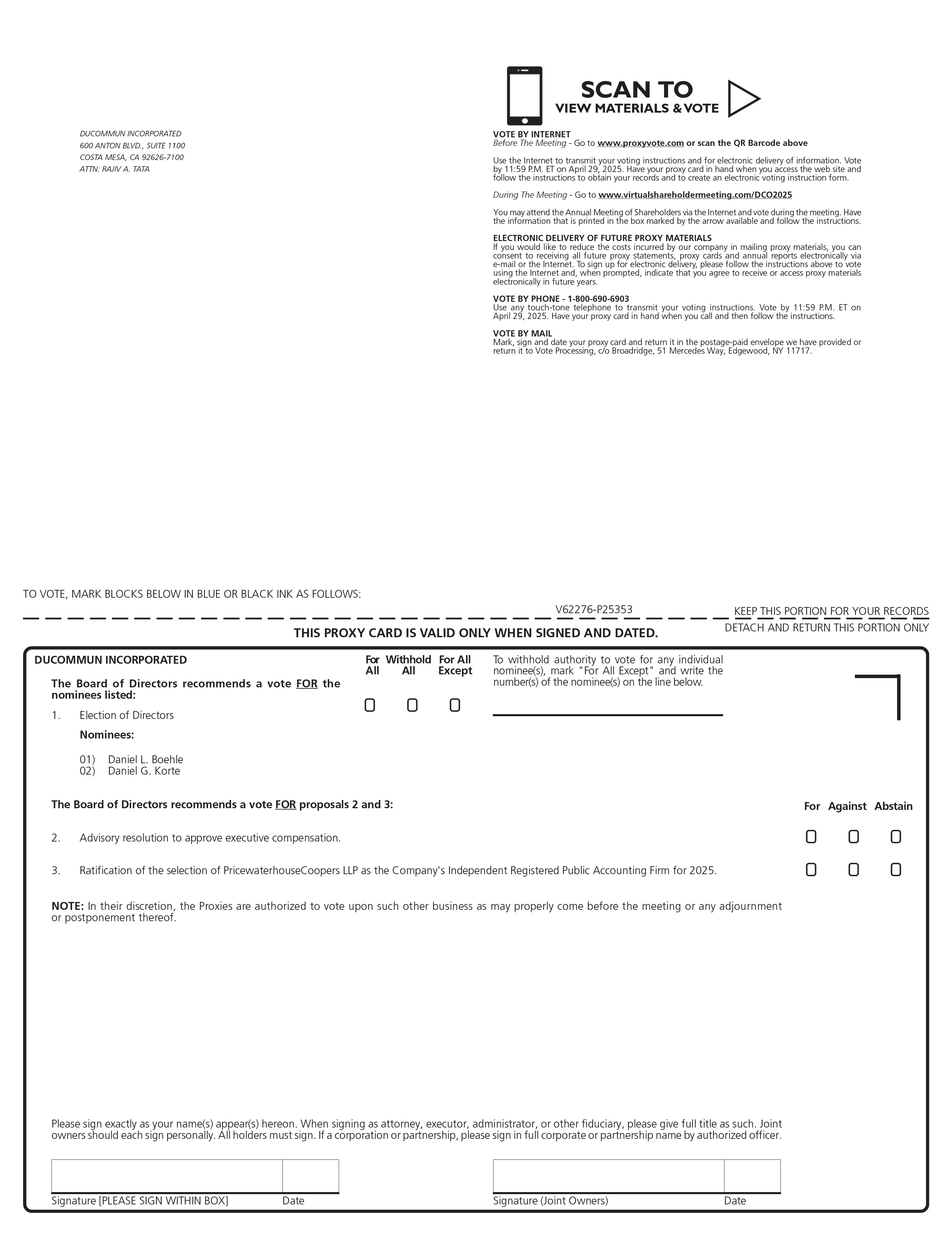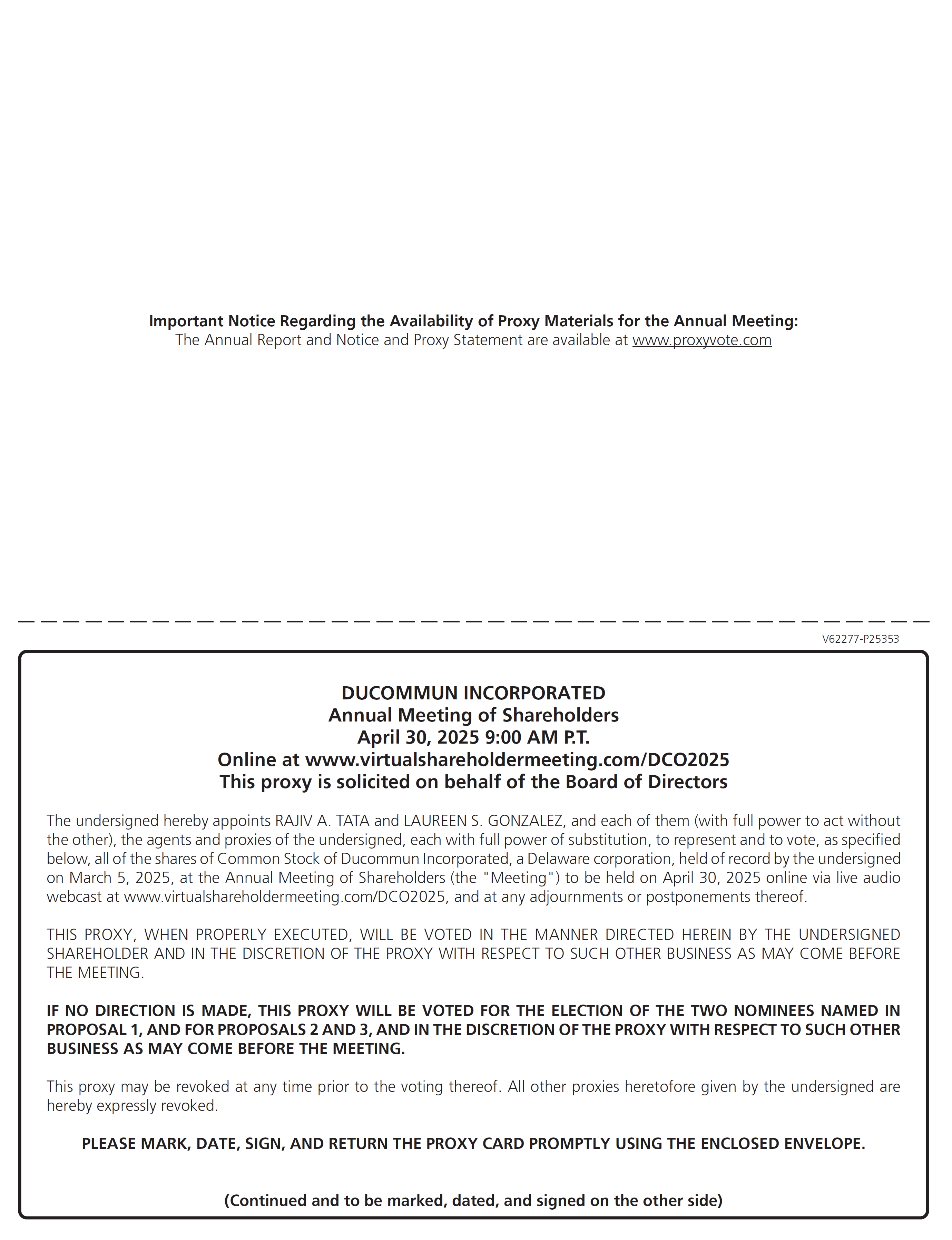 很高兴有请您参加2025年Ducommun Incorporated年度股东大会(简称“年会”)。