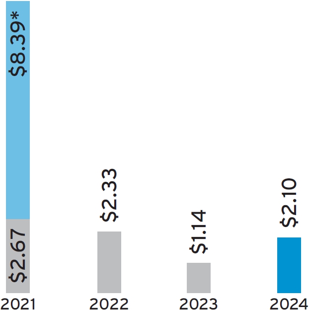 | GAAP摊薄每股收益 | $ | 2.10 | $ | 1.14 | $ | 2.33 | $ | 11.06 | $ | 2.45 | ||||||||||