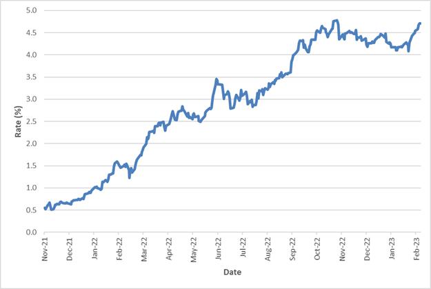 | 历史SOFR CMS2(%) 2021年11月18日至2023年2月16日 |