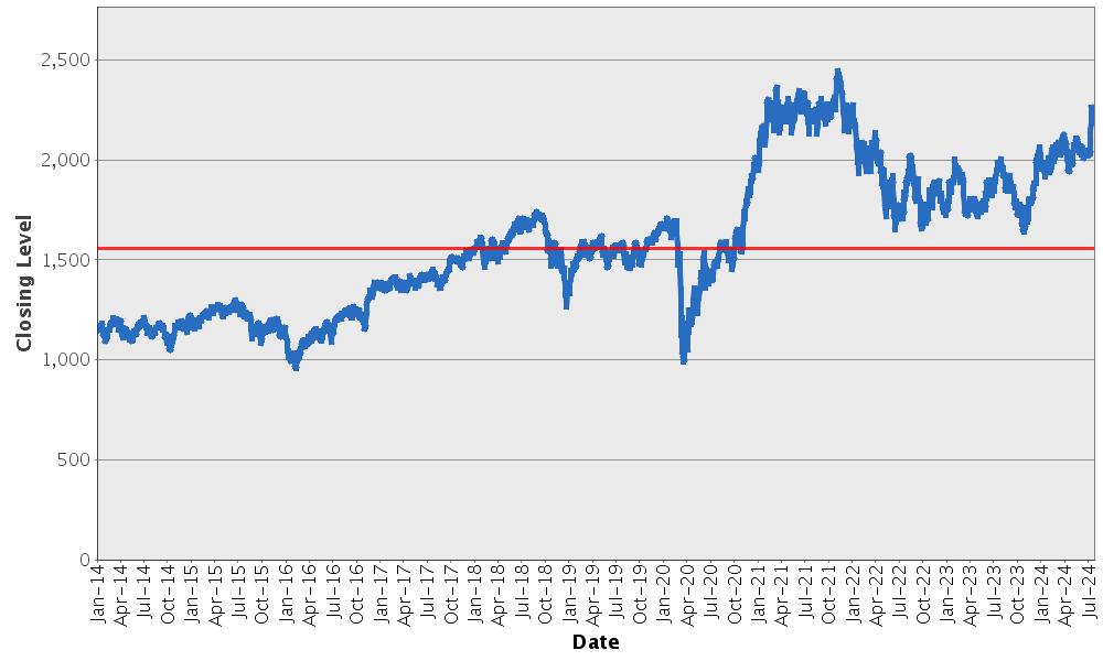 | 标普 500®指数–历史收盘水平* 2014年1月2日至2024年7月25日 |