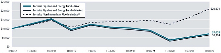 事实证明,2022财年是一个动荡的环境,对整个市场来说有许多不利因素。不利因素包括对经济衰退的担忧、通胀上升以及对加息的预期。能源部门是一个异类,连续第二个财政年度表现良好。事实上,截至2022年12月31日,以Tortoise北美管道指数为代表的中游SM,以及更广泛的能源,以标准普尔500能源精选行业为代表®指数,在过去两个历年的表现均优于标准普尔500指数。