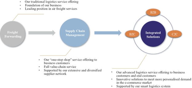 公司在确定其经营分部时采用管理方法。公司的首席运营官已被确定为首席执行官,在做出有关分配资源和评估公司业绩的决策时审查综合业绩。出于内部报告和管理层运营审查的目的,公司首席执行官不会将公司的业务按服务项目分开。管理层已确定公司有一个经营分部,这是货运代理服务。主要经营决策者根据经审核综合经营报表及综合收益(亏损)报告的综合净收益(亏损)评估业绩及决定如何分配资源。重大分部开支及其他分部项目与经审核综合经营报表及综合收益(亏损)所载财务资料一致。没有任何其他定期向主要经营决策者提供但尚未列入经审核综合经营及综合收益(亏损)报表的费用类别。分部资产的计量在经审计的合并资产负债表中作为合并资产总额列报。该公司几乎所有的长期资产都是在香港派生并位于香港。