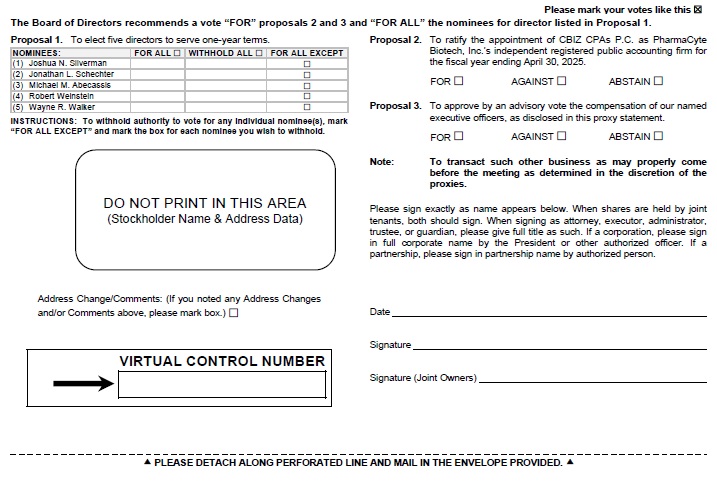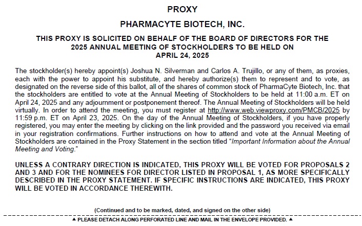 诚邀您参加将于美国东部时间2025年4月24日(星期四)上午11:00举行的PharmaCyte Biotech生物技术股份有限公司(“PharmaCyte”)年度股东大会。