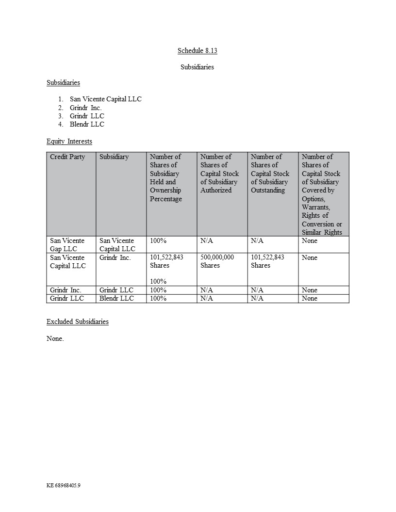 参考信用协议,日期为2020年6月10日(经修订、重述、修订和重述、补充或以其他方式不时修改,“信用协议”),由San Vicente Capital LLC特拉华州有限责任公司(“借款人”)、San Vicente Gap LLC、特拉华州有限责任公司(“控股”)、借款人签署作为担保人或此后指定为担保人的每个子公司、贷款人不时的一方(每个“贷款人”,统称为“贷款人”))和堡垒信贷公司,作为贷款人的行政代理人(在这种情况下,连同其继承人和允许的受让人,统称为“行政代理人”),以及作为担保方的抵押代理人(在这种情况下,连同其继承人和允许的受让人)这种能力,“抵押代理人”,并与行政代理人一起,统称为“代理人”和“代理人”)。除非本协议另有定义或上下文另有要求,本协议所用的大写术语应具有信用协议中规定的含义。