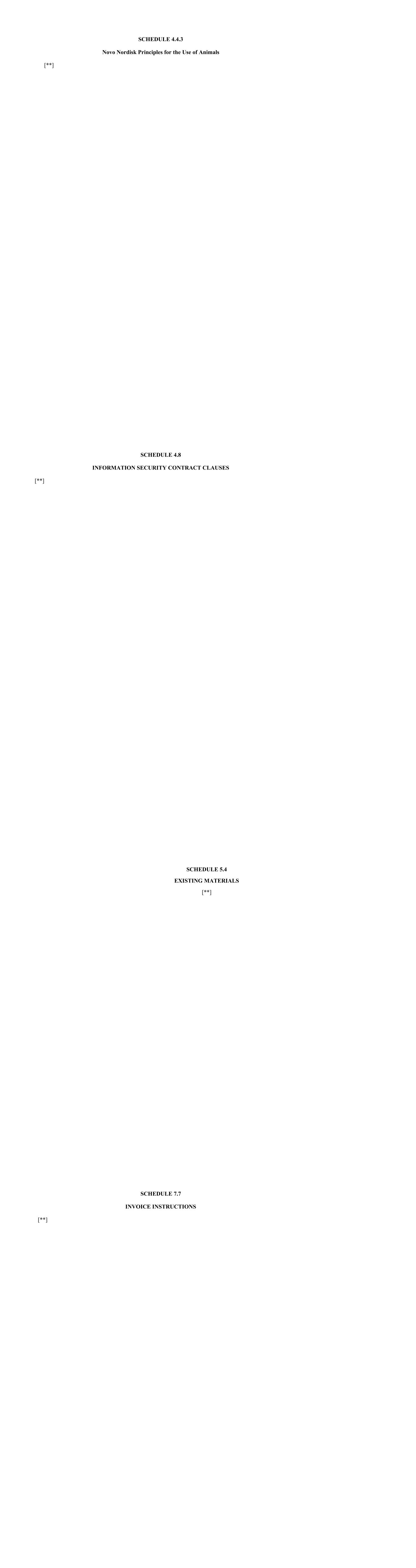 附表4.4.3 诺和诺德动物使用原则[**]附表4.8资料保安合约条款[**]附表5.4现有材料[**]附表7.7发票指示[**]