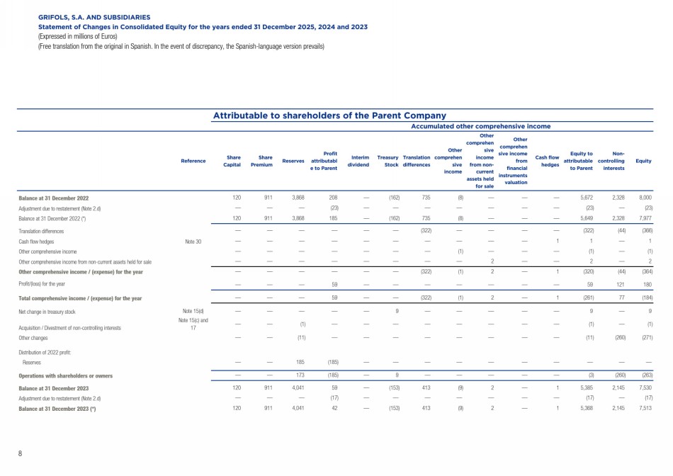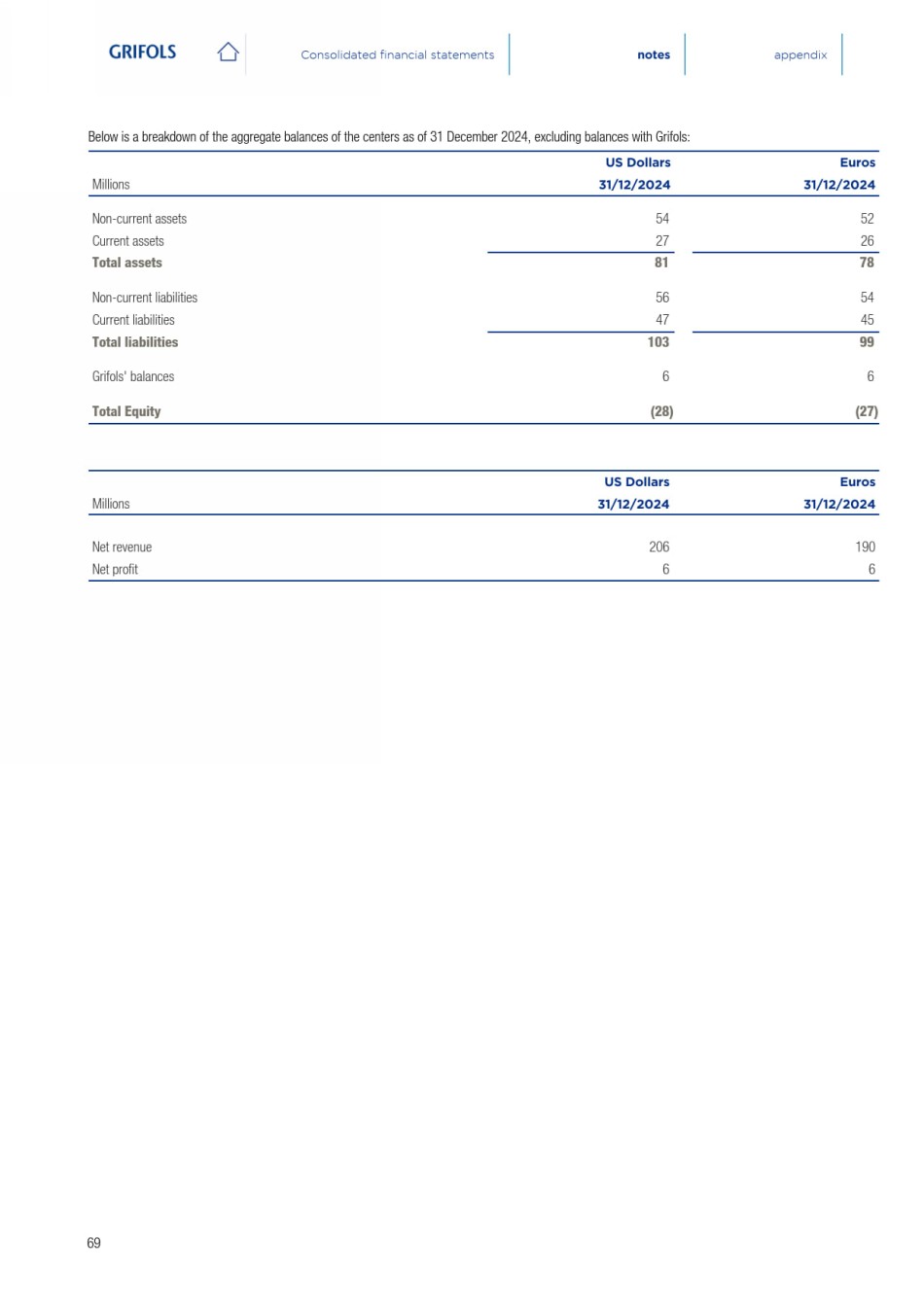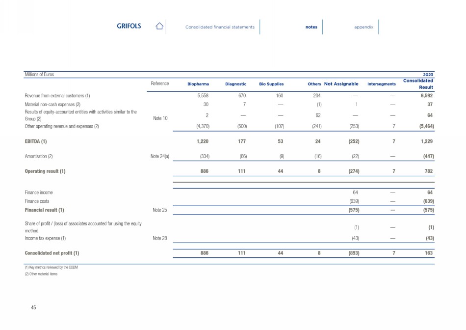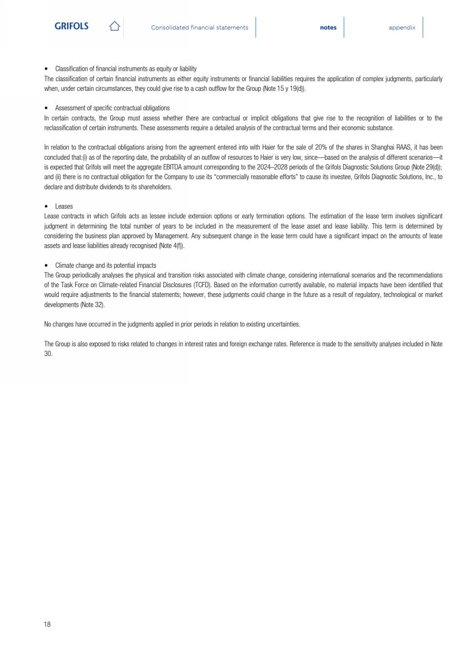 本报告中包含的不参考历史数据的事实和数字是‘预测和未来假设’。“相信”、“期望”、“预期”、“预测”、“希望”、“打算”、“应该”、“将努力实现”、“被估计”、“未来”等词语和类似表述,只要是指Grifols组,就用于识别未来的预测和假设。这些表述反映了管理团队在撰写本报告时的假设、假设、预期和预测,这些受制于一系列因素,意味着实际结果可能存在重大差异。Grifols集团未来的业绩可能会受到与其自身活动相关的事件的影响,例如用于制造其产品的原材料供应短缺、竞争产品出现在市场上或其经营所在市场的监管框架发生变化等。在编写本报告之日,Grifols小组已采取必要措施,以减轻这些事件的潜在影响。GRIFOLS, S.A.不承担公开报告、修改或更新预测或未来假设以使其适应本报告撰写之日后的事实或情况的义务,除非适用法律明确要求。根据3月17日关于证券市场和投资服务的第6/2023号法律以及任何实施上述立法的法规的规定,本文件不构成购买或认购股份的要约或邀请。此外,本文件不构成购买、出售或交换的要约,也不构成购买、出售或交换任何证券的要约邀请,也不构成任何其他司法管辖区的任何投票或批准的邀请。本文件所载信息未经Grifols集团外部审计员核实或修改。