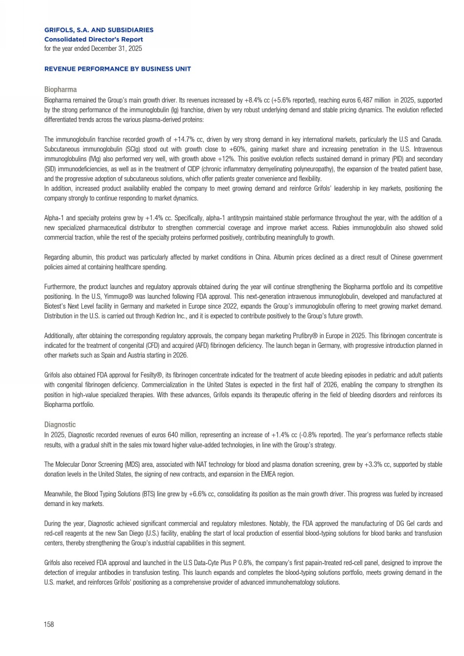 生物制药在2025年实现8.4%的CC(10.9%的CC同比)增长,加强了其作为集团主要增长引擎的作用。业绩受到主要市场强劲的潜在需求的推动,尤其是在免疫球蛋白(IG)特许经营方面。