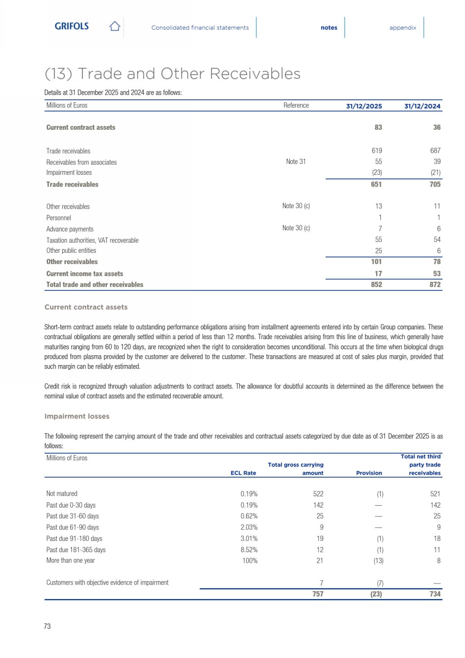 Grifols重要供应商157个概览2025年重要一级供应商总数1,701个2024年1,724个2023年1,691个2023年通过文件或现场评估在ESG标准中评估的供应商1,509个2025年411个2024年一级供应商支出占重要供应商的百分比2025年89% 2024年86% 2023年84% Grifols的供应商付款做法Grifols的供应商付款做法旨在确保清晰高效的流程与公司内部政策保持一致。这些做法既适用于外部供应商,也适用于公司间交易,同时考虑到每个供应商的具体特点。Grifols通过其财务手册中规定的两项主要政策来管理支付做法:1。供应商政策:为外部供应商定义付款条件,包括特定国家条款和某些供应商的例外情况,例如个人提供的专业服务或产品许可。标准付款条件与每个国家的监管要求保持一致,银行转账作为首选付款方式,并提供供应链金融等替代选择-可用。2.Grifols公司的供应商政策:管理集团公司之间的付款条件,根据供应商的主要活动和买方所在国家确定付款期限,服务和租金的标准期限为30天。集团公司之间按月付款,逾期付款导致公司间借款。按地区分,付款方式如下:•西班牙供应商为西班牙子公司:每月25日付款,结算到月底到期的发票。•欧洲和LATAM子公司的其他供应商:逾期发票每周三付款。•美国和加拿大子公司:每周三为付款时到期的发票付款。Grifols采用各种做法来确保中小型公司收到及时和可预测的付款,加强了它们的财务稳定性以及与公司的关系。除其他措施外,这些政策规定了更短的付款期限,但须经财政部事先批准;为特定项目或交付提供部分预付款;将流程数字化以减少批准和付款延迟;以及透明沟通以促进问题的及时解决。2025年,全球平均支付期为53天,而2024年为51天158。截至2025年12月31日,Grifols没有与拖欠供应商款项相关的未决法律诉讼。大环境社会治理附件196综合年度报告2025157重要供应商:存在重大ESG风险、业务相关性高或两者兼而有之的供应商。其中包括对业务至关重要的关键供应商,尽管后者通常仅根据其业务相关性进行评估。一级供应商:直接向公司提供商品、材料或服务(包括intell ect ual property(IP)和专利)的供应商。如果没有具体说明,则假定它们是一级供应商。158全球PMP包括欧洲、拉丁美洲和美国。西班牙的PMP(国家综合)为78 DAY,如年度账目报告附注22所述。