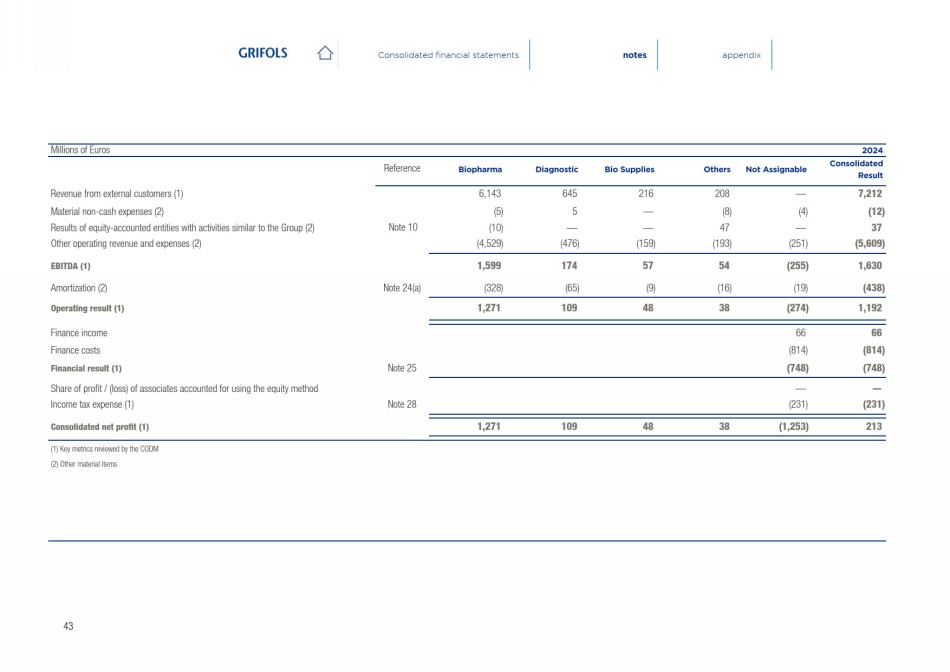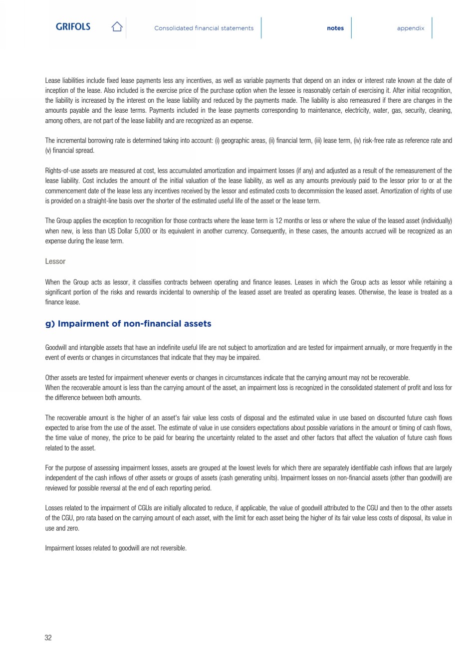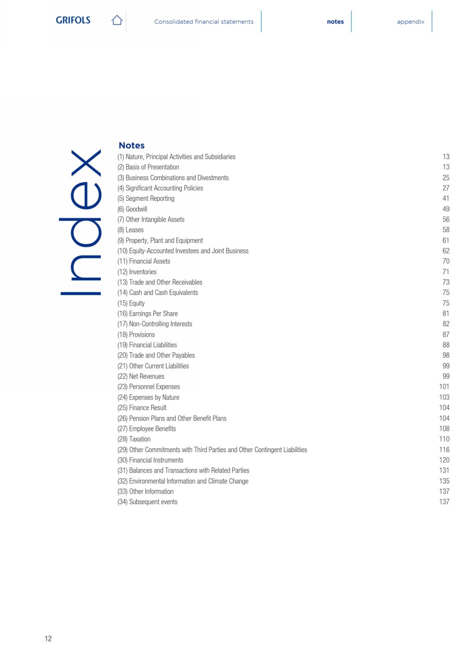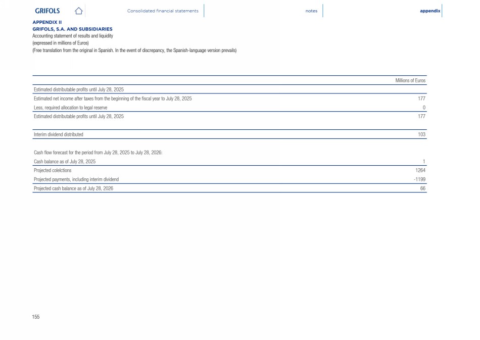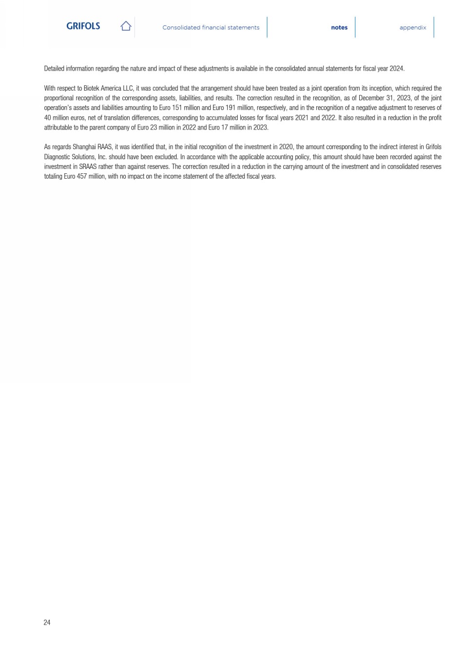 本文件包含以下替代绩效衡量标准(APMs):报告的合并EBITDA、调整后的合并EBITDA、根据信贷便利的杠杆率、根据信贷便利的净债务、自由现金流、营运资本和非经常性项目。有关APM的定义、使用解释和调节的更多详细信息,请参阅演示文稿的附录以及来自Grifols网站www.grifols.com/en/investors的“替代绩效措施”文件。