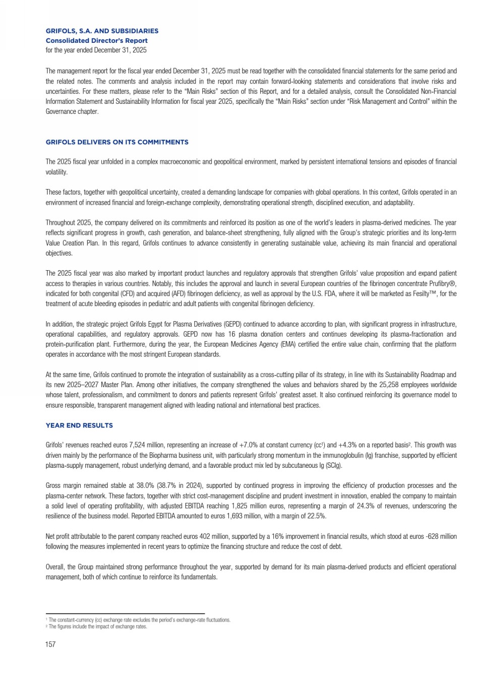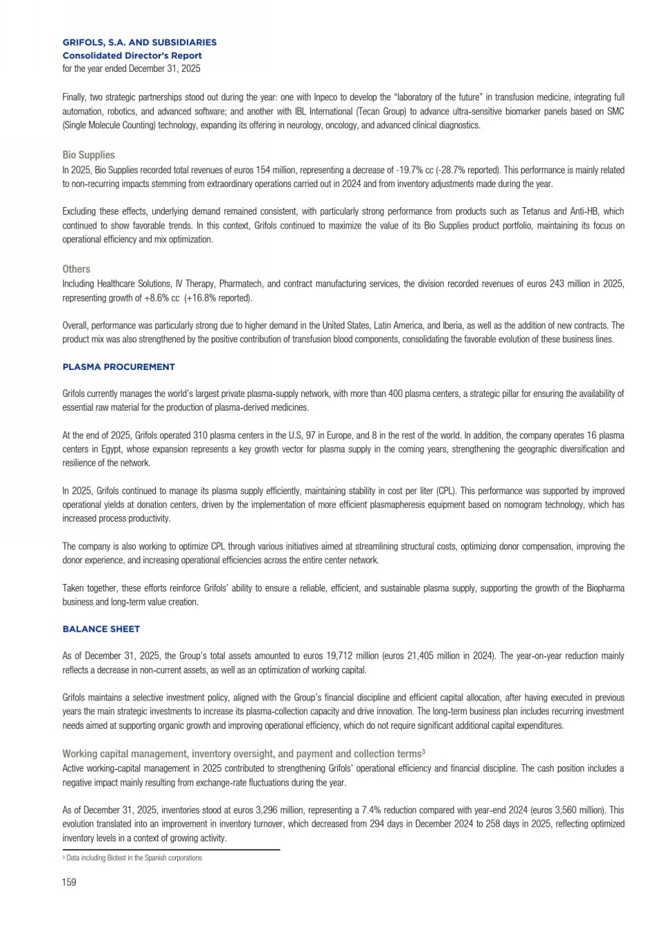 | · | 2026年,Grifols将优先考虑利润率提高带动的EBITDA增长、持续的自由现金流扩张和去杠杆化进展,建立在Grifols在行业中的独特地位之上,包括在埃及和加拿大的自给自足平台 |
