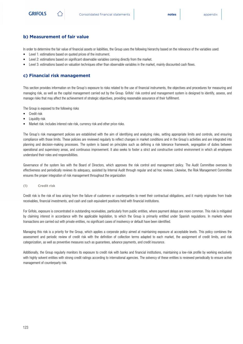 主要风险下表列出了Grifols的主要风险,这些风险代表管理层认为可能对公司的战略obj e ctives、运营和长期业绩产生最重大影响的重大风险敞口。虽然许多风险与上一年确定的风险一致,但会定期审查其相对重要性和潜在驱动因素,同时考虑到市场变化以及监管、金融和地缘政治发展。与ESG事项相关的风险——并非所有风险都被归类为主要风险——在本报告相关章节中有详细描述。财务风险在综合财务报表附注30(财务风险管理)中有所论述。关于Grifols风险的全面描述可在该公司的年度20-F表格中公开获得,该表格每财年更新一次。网络安全和数字弹性c e1网络安全威胁的频率和复杂程度不断增加,有可能危及敏感的即时信息、扰乱关键运营或导致监管、财务或声誉影响。与此同时,稳健的技术治理ANC E ——包括人工智能(AI)治理——对于确保有弹性的技术运营、健全的决策制定、监管合规和数字资产的安全管理至关重要。Grifols运营的信息安全管理系统与国际标准和最佳实践保持一致。该系统em定义了用于识别和评估威胁、保护关键资产、d ete cting和应对事件以及恢复受影响运营的角色、责任、政策和程序。该公司不断监测不断演变的威胁形势,加强其治理框架——包括负责任地使用人工智能和第三方监督——并加强基础设施、流程和控制,以提高预防、准备和复原力。资本Structure债务水平、再融资期限、流动性和市场风险之间的不平衡可能会限制Grifols的财务灵活性,并使该公司面临资金、利率和股价的波动。保持审慎的资本结构和充足的流动性水平对于维持运营、融资增长和应对不断变化的市场条件至关重要。Grifols已经执行了几项业务,以进一步加强其资产负债表,这符合其促进ROV E现金流产生以及主动和审慎管理债务水平和到期情况的战略优先事项。产品创新和竞争力n2创新是Grifols长期增长的关键驱动力。该公司必须在快速发展的技术和治疗环境中竞争的同时,成功开发新产品、扩大适应症和增强制造工艺。替代模式的进展,连同科学、监管和运营的不确定性,可能会影响对现有时代的需求,并限制研发投资的成功。Grifols通过保持专注和多样化的研发管道、加强其临床、监管和制造能力以及持续监测竞争和技术发展来降低这种风险。该公司通过潜在的合作或许可机会补充内部创新,并对其现有产品应用严格的生命周期管理。产品安全和质量y3确保Grifols产品的质量和安全是公司的当务之急。不遵守适用的质量a和安全规定可能会对患者、捐赠者和临床试验参与者的健康和安全产生不利影响,并导致产品责任索赔或产品召回,并可能产生重大的财务和声誉影响。Grifols维护着健全的医疗器械质量管理体系和警戒体系、药物警戒和监督体系以及临床质量体系Ethics and Complianc e 4 Grifols在一个高度监管的环境中运营,在这个环境中,医药产品和医疗器械的推广、营销和销售受到世界各地越来越多的政府监管。除了反腐败、竞争和医疗保健合规要求外,地缘政治发展增加了经济制裁、贸易管制和出口合规义务的风险。不遵守规定可能会导致经济处罚、运营限制或声誉受损。该公司制定了反腐败、竞争、医疗保健和企业合规政策和程序来管理其商业行为,包括与分销商和供应商相关的政策和程序。通过CONDU CT、强制性培训、第三方尽职调查流程等规范加强诚信, 以及报告和沟通机制,并得到持续监督和监测的支持。风险评估和缓解活动一般环境社会治理附件206综合年度报告2025