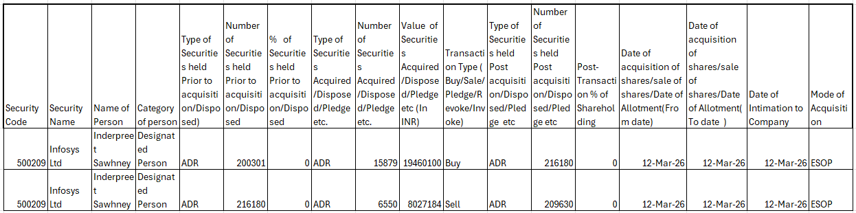 根据2015年印度证券交易委员会(禁止内幕交易)条例第7(2)条,如果任何日历季度的交易价值合计超过100万印度卢比,公司的每一发起人、指定人员和董事应在该交易发生后的2个交易日内向公司披露获得或处置的此类证券的数量,并且每一公司应在收到此类披露或知悉此类信息后的2个交易日内将此类交易的详情通知国家证券交易所和孟买证券交易所(“证券交易所”)。