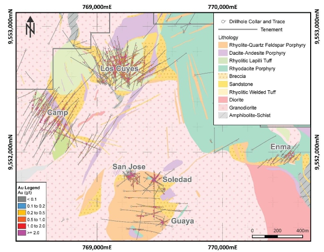 | • | Los Cuyes和Enma矿床之间的缺口,用于NW走向矿化构造的潜在走向延伸。 |