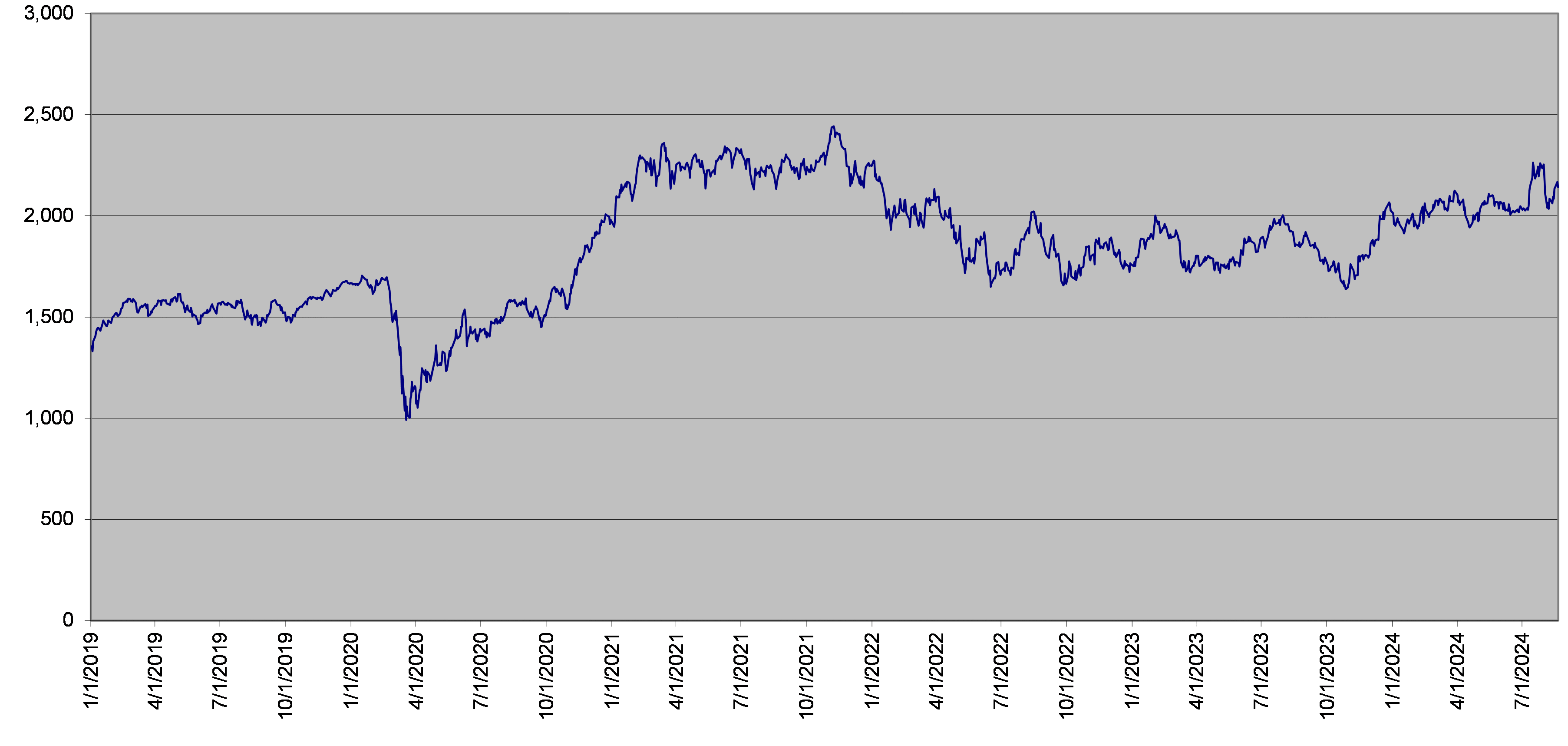 下图列出2019年1月1日至2024年8月20日期间SPW指数的每日收盘值。相关表格列出同期各季度SPW指数公布的高低收盘值,以及季度末收盘值。2024年8月20日SPW指数收盘值为6,969.52。我们从彭博金融市场获得了下图和表格中的信息,未经独立核实。SPW指数有时会经历高波动时期,你不应该把SPW指数的历史值作为其未来表现的指示。
