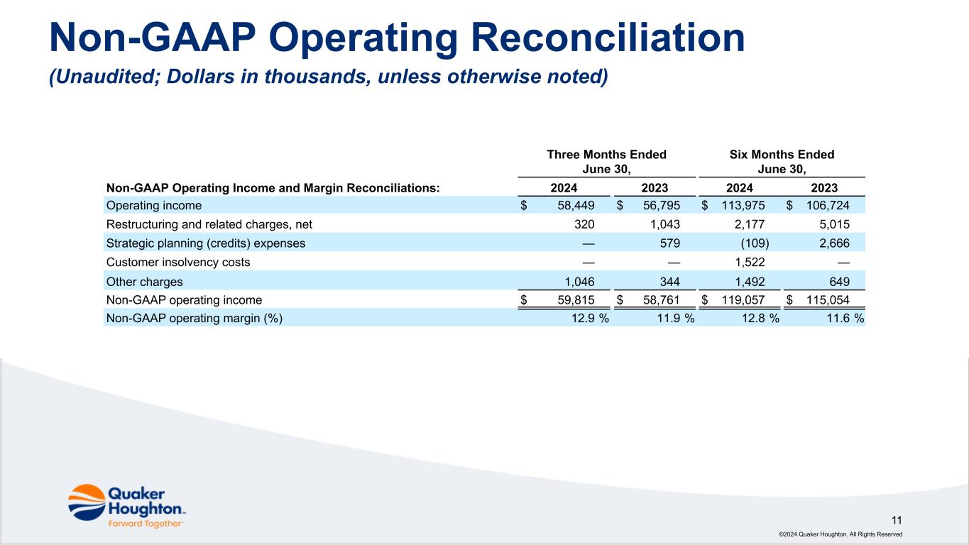 Quaker Houghton 2024年第二季度业绩投资者电话会议