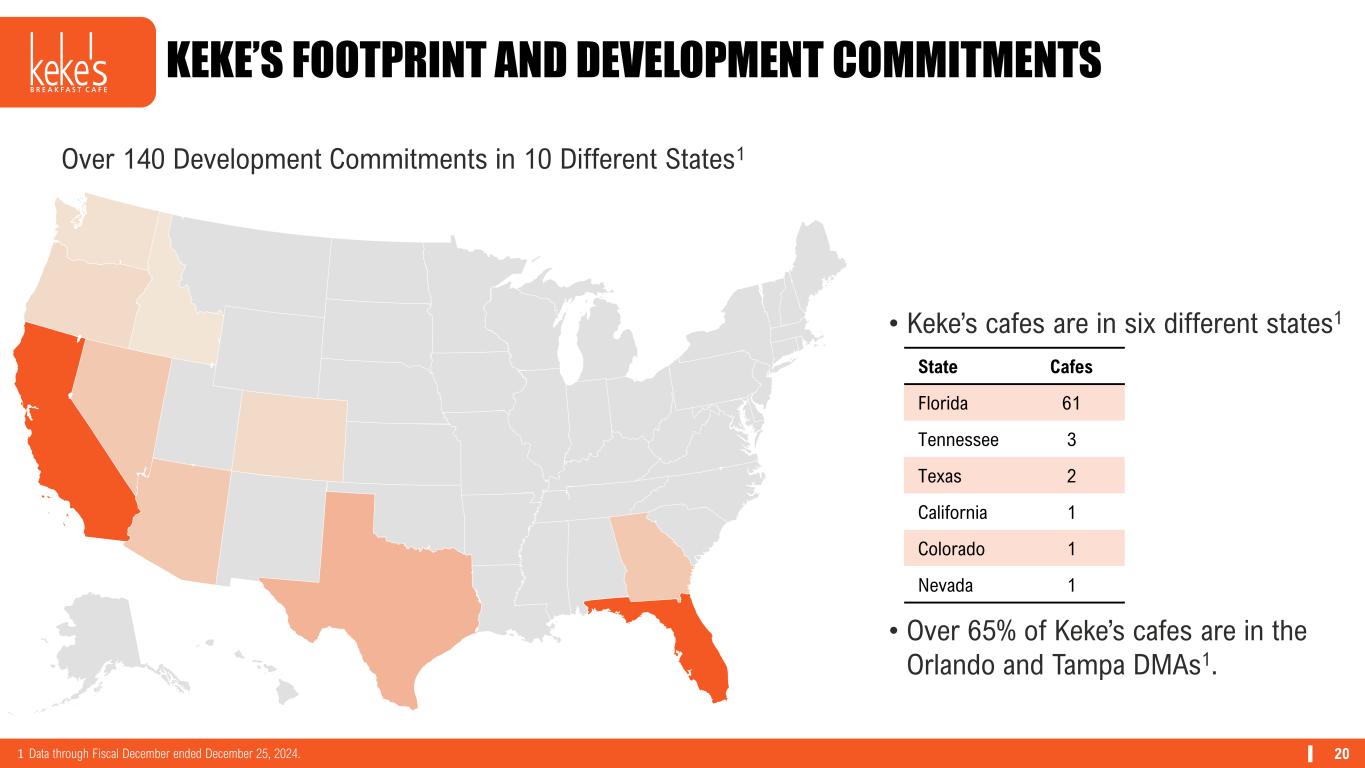 27(5.3%)(3.8%)(4.0%)(4.6%)(0.9%)4.1% Q2 23 Q4 23 Q1 24 Q2 24 Q3 24 Q4 24(3.4%)0.7%(1.1%)(4.4%)(1.7%)(3.7%)Q3 23 Q4 23 Q1 24 Q2 24 Q3 24 Q4 24强劲的销售以及上午7:00 –下午2:30的有限营业时间表现最佳的咖啡馆产生了3M + AUV的KeKE特许经营和公司餐厅销售1 KeKE的2022年餐厅AUV是根据收购后报告的平均单位数量进行年化的。2同店销售额包括公司餐厅的销售额以及在所述可比期间营业的非合并特许经营和特许经营餐厅的销售额。总营业收入仅限于公司餐厅销售额和特许权使用费、广告收入、初始费用和其他费用以及来自非合并特许和特许餐厅的占用收入。因此,国内特许经营同餐厅销售额和国内全系统同餐厅销售额应被视为对公司按公认会计原则报告的业绩的补充,而非替代。2024年第四季度和2024财年基于初步结果。$ 1.5 $ 1.3 $ 1.8 $ 1.8 $ 1.8 $ 1.8 201920202021202220232024 $ Ms $ 1.7 $ 1.3 $ 1.8 $ 1.8 $ 1.7 201920202021202220232024 $ Ms KEKE的特许经营餐厅AUVS 1,2 KEKE的特许经营的同一餐厅销售2 KEKE的公司餐厅AUVS 1,2 KEKE的公司同一餐厅销售2