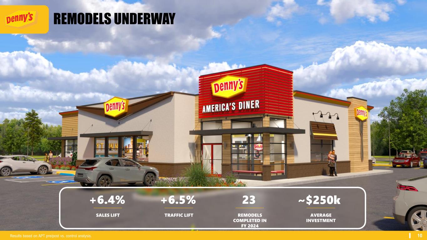 正在进行的10个改造品+ 6.4%的销售提升+ 6.5%的交通提升23个改造品在2024财年完成,基于APT预/后与控制分析的平均投资结果约为25万美元。