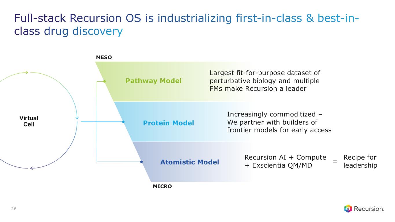 MICRO通路模型MESO微扰生物学和多个FM的最大适合用途的数据集使递归成为领导者蛋白质模型日益商品化–我们与早期访问原子模型前沿模型的构建者合作递归AI + Compute + Exscientia QM/MD = Recipe for Leadership 26全栈递归OS正在将一流的和一流的药物发现产业化