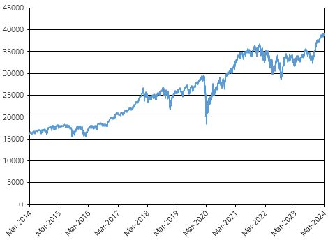 下图展示了SPX在2014年3月19日至2024年3月19日期间的表现。