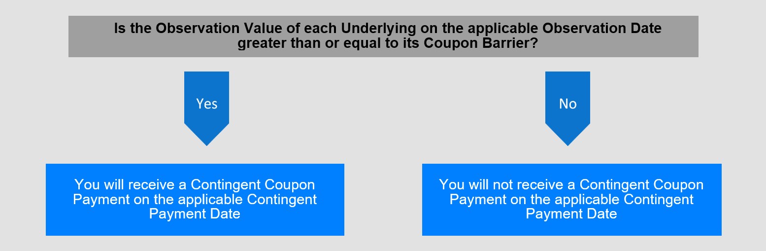 这些票据在适用的或有付款日期提供每1000美元本金的25美元的季度或有息票支付,前提是在相关的季度观察日期,观察价值为每个标的资产大于或等于其息票壁垒。
