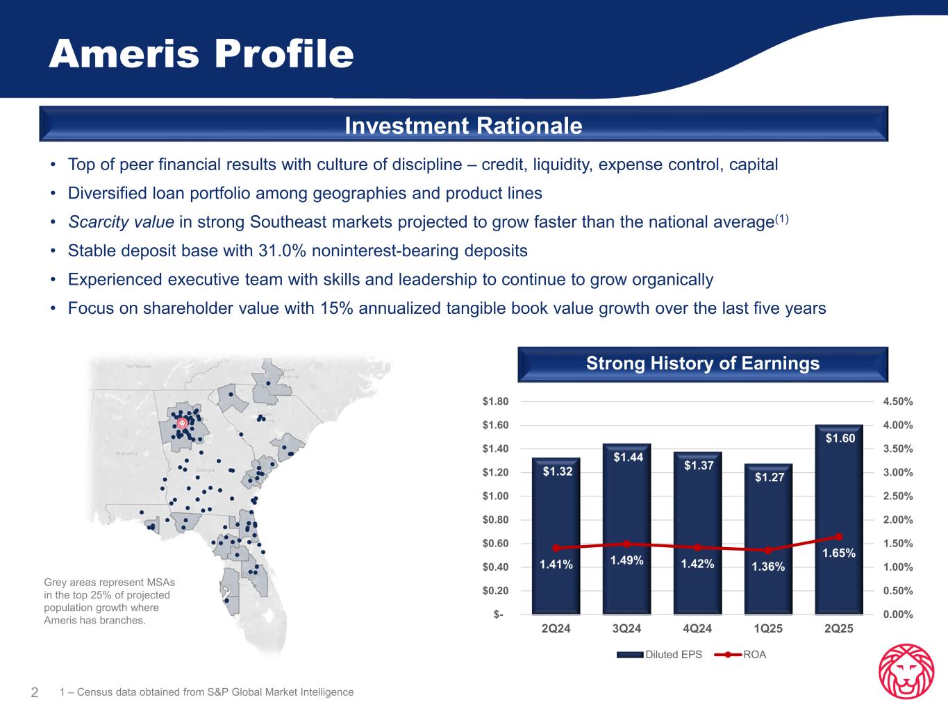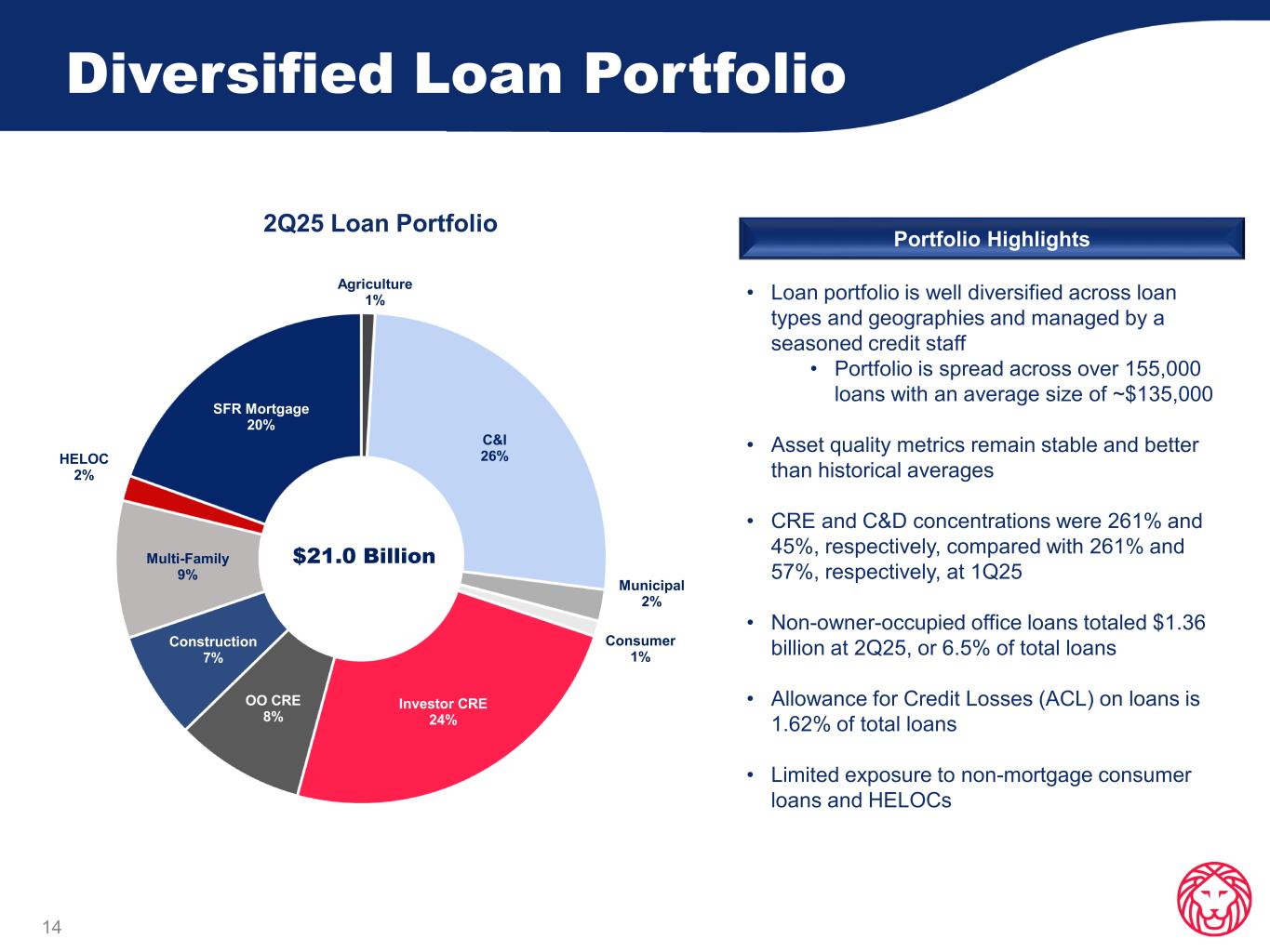 警示性声明1本演示文稿包含联邦证券法定义的前瞻性声明,除其他前瞻性声明外,还包括某些计划、期望和目标。“可能”、“相信”、“预期”、“预期”、“打算”、“将”、“应该”、“计划”、“估计”、“预测”、“继续”和“潜在”等词语或这些术语或其他类似术语的否定词,以及类似的表达方式,旨在识别前瞻性陈述。本演示文稿中的前瞻性陈述基于当前的预期,旨在帮助理解未来的潜在表现。此类前瞻性陈述涉及众多假设、风险和不确定性,可能导致实际结果与任何此类陈述中明示或暗示的结果存在重大差异,包括但不限于以下内容:一般竞争、经济、失业、政治和市场条件和波动,包括房地产市场条件,以及此类条件和波动对借款人的信誉和付款行为、抵押品价值、资产回收价值和投资证券价值的影响;利率变动及其对净息差的影响,投资安全估值和其他业绩衡量;对信贷质量和业绩的预期;立法和监管变化;美国政府贸易、货币和财政政策的变化,包括关税;产品定价和服务的竞争压力;影响我们客户或运营的欺诈、盗窃或其他不当行为;网络安全风险,包括数据泄露、恶意软件、勒索软件和账户接管;我们的业务战略和计划的成功和时机;我们对未来增长的展望和长期目标;以及自然灾害、地缘政治事件、战争或恐怖主义行为或其他敌对行动、公共卫生危机和我们无法控制的其他灾难性事件。有关可能导致此类前瞻性陈述与实际结果存在重大差异的一些其他风险和其他因素的讨论,请参阅公司向美国证券交易委员会提交的文件,包括公司截至2024年12月31日止年度的10-K表格年度报告以及公司随后提交的定期报告和其他文件。前瞻性陈述仅在作出之日起生效,公司不承担更新或修改前瞻性陈述的义务。