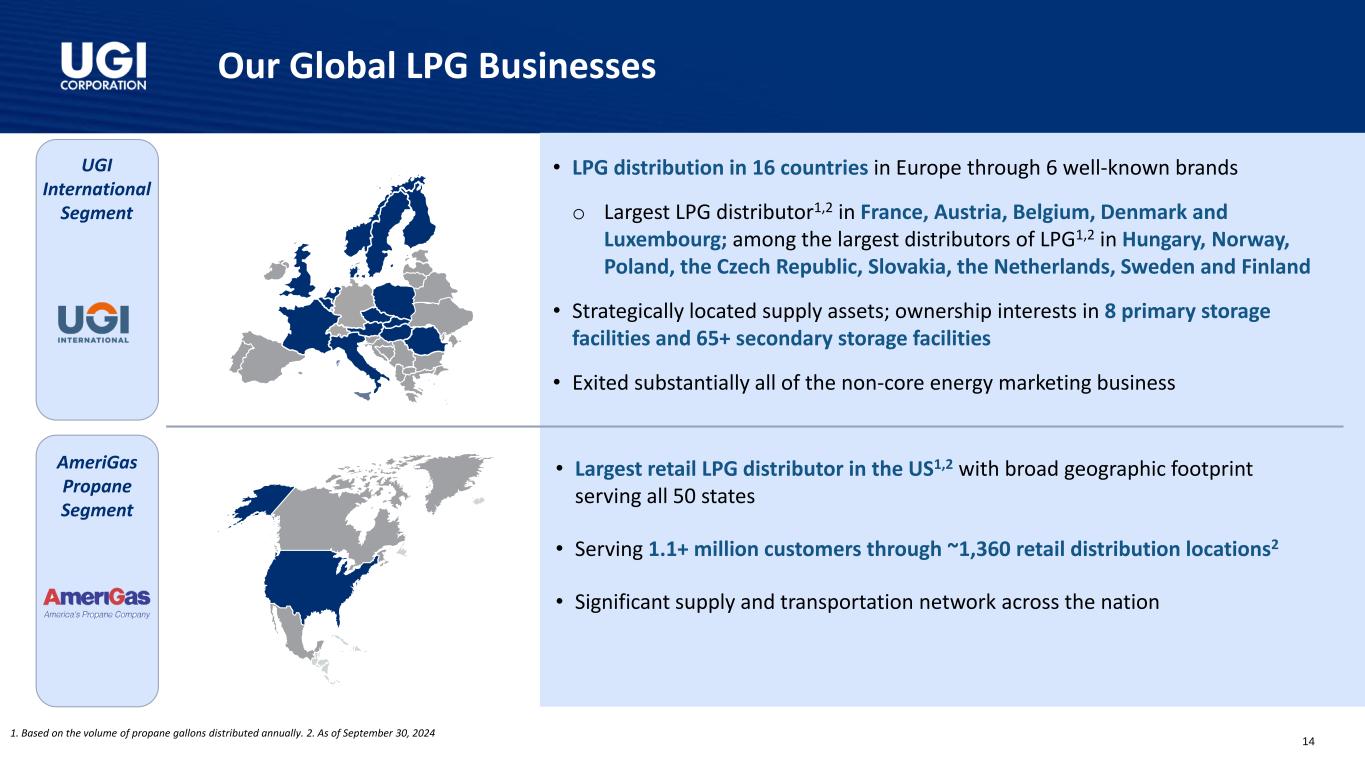 我们的全球液化石油气业务涉及UGI国际部门AmeriGas丙烷部门•通过6个知名品牌在欧洲16个国家分销液化石油气o法国、奥地利、比利时、丹麦和卢森堡的最大液化石油气分销商1,2;在匈牙利、挪威、波兰、捷克共和国、斯洛伐克、荷兰的液化石油气1,2最大分销商中,瑞典和芬兰•位于战略位置的供应资产;8个初级储存设施和65 +个二级储存设施的所有权权益•基本上退出了所有非核心能源营销业务•美国最大的零售液化石油气分销商1,2,地理足迹广泛,服务于所有50个州•通过约1,360个零售分销地点为1.1 +万客户提供服务2 •在全国范围内拥有重要的供应和运输网络1。基于每年分配的丙烷加仑体积。2.截至2024年9月30日14