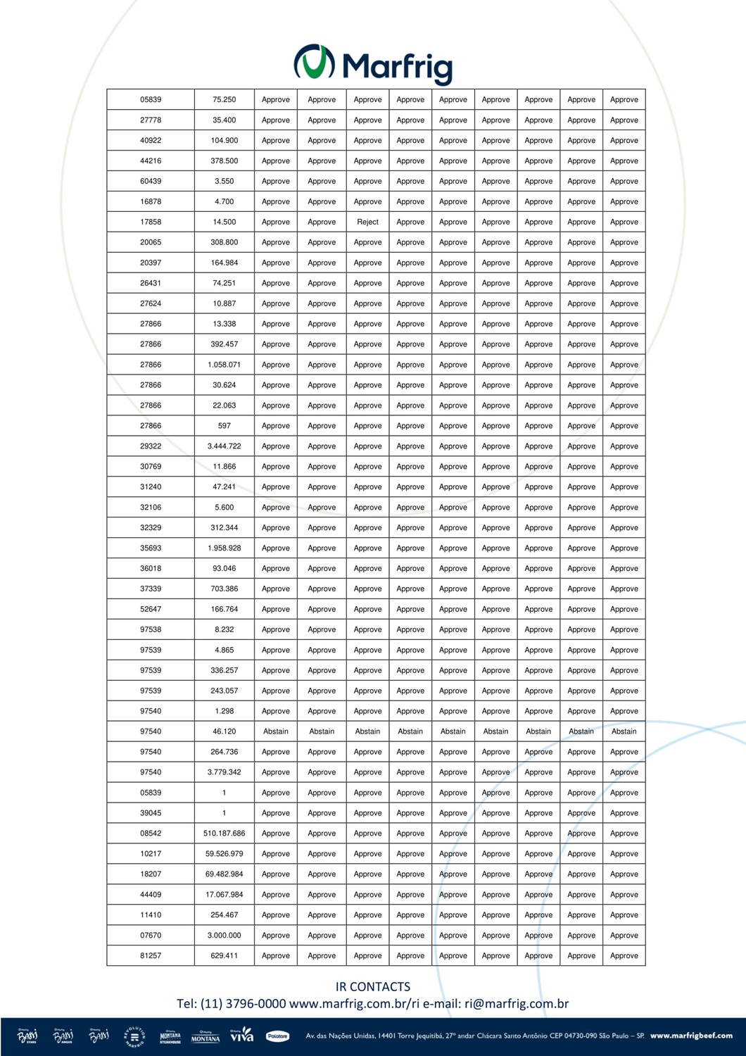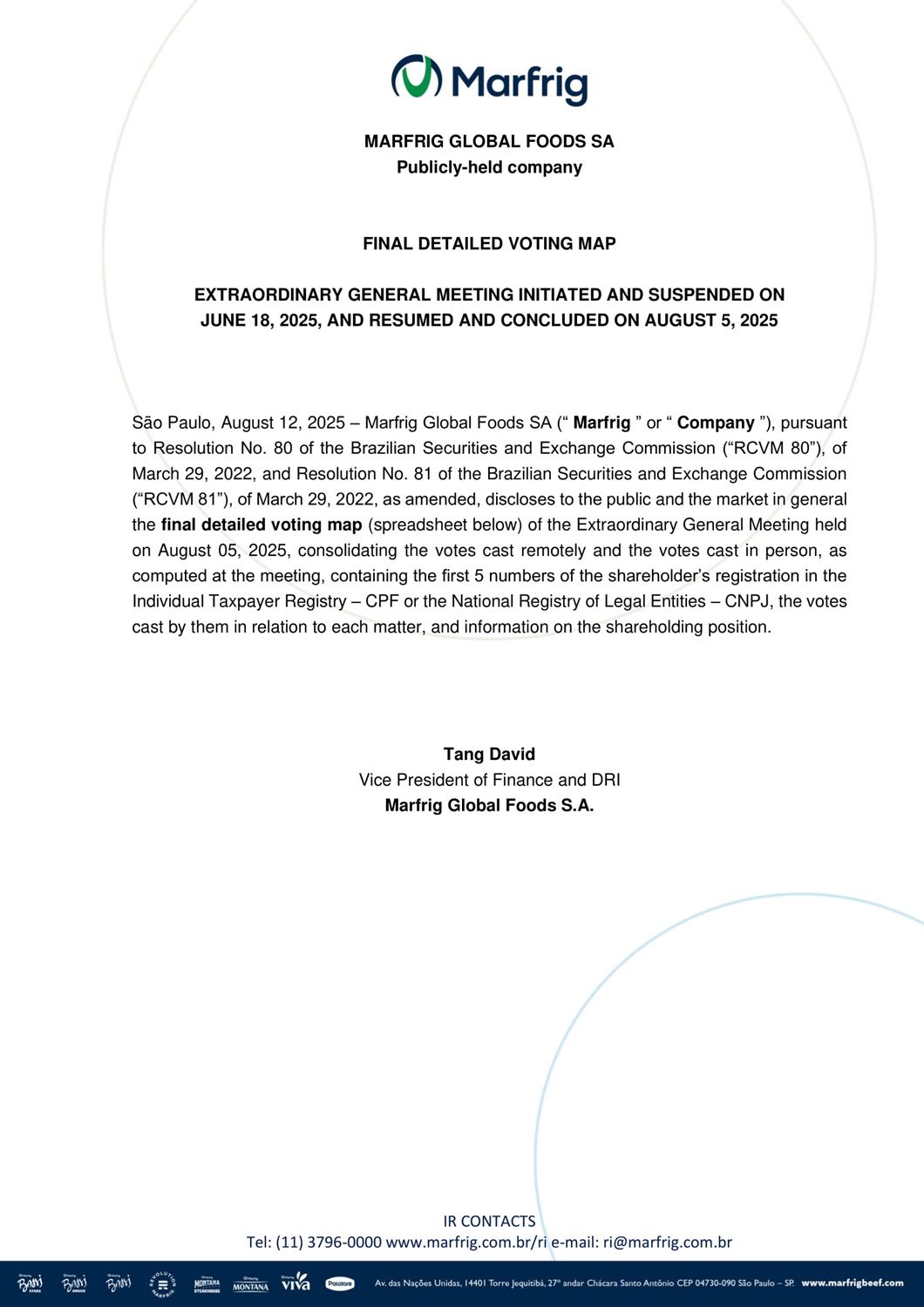 MarfRIG于2025年8月12日向投资者提供的MarfRIG特别大会最后详细投票地图