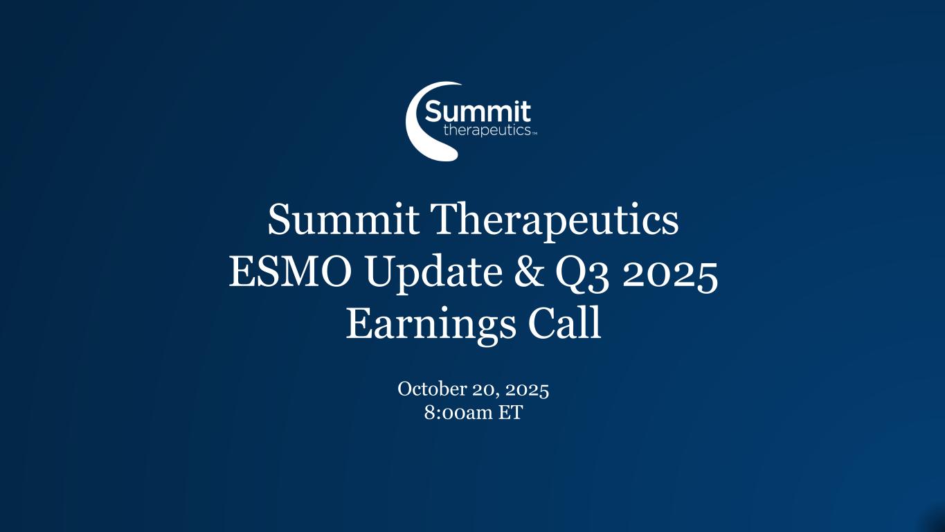 Summit Therapeutics ESMO更新和2025年第三季度财报电话会议2025年10月20日美国东部时间上午8:00