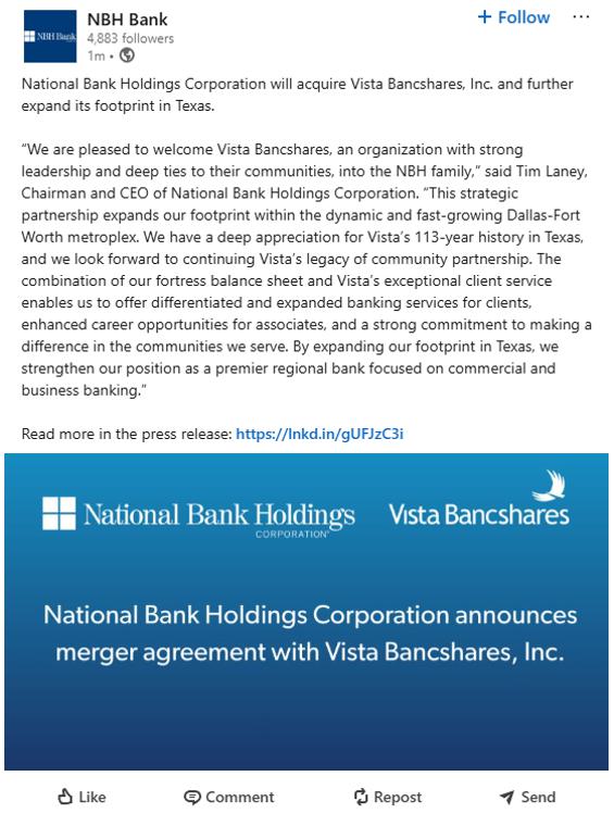 以下通讯由National Bank Holdings Corporation于2025年9月18日在LinkedIn上发布。