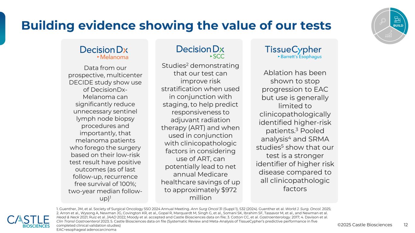 ©2025 Castle Biosciences 11项经过验证的战略旨在推动为利益相关者创造价值,专注于具有高、未满足的临床需求和重大市场机会的最佳/一流测试建立稳健的临床证据PENETRATE目标市场,以进一步测试临床医生和付款人的采用情况