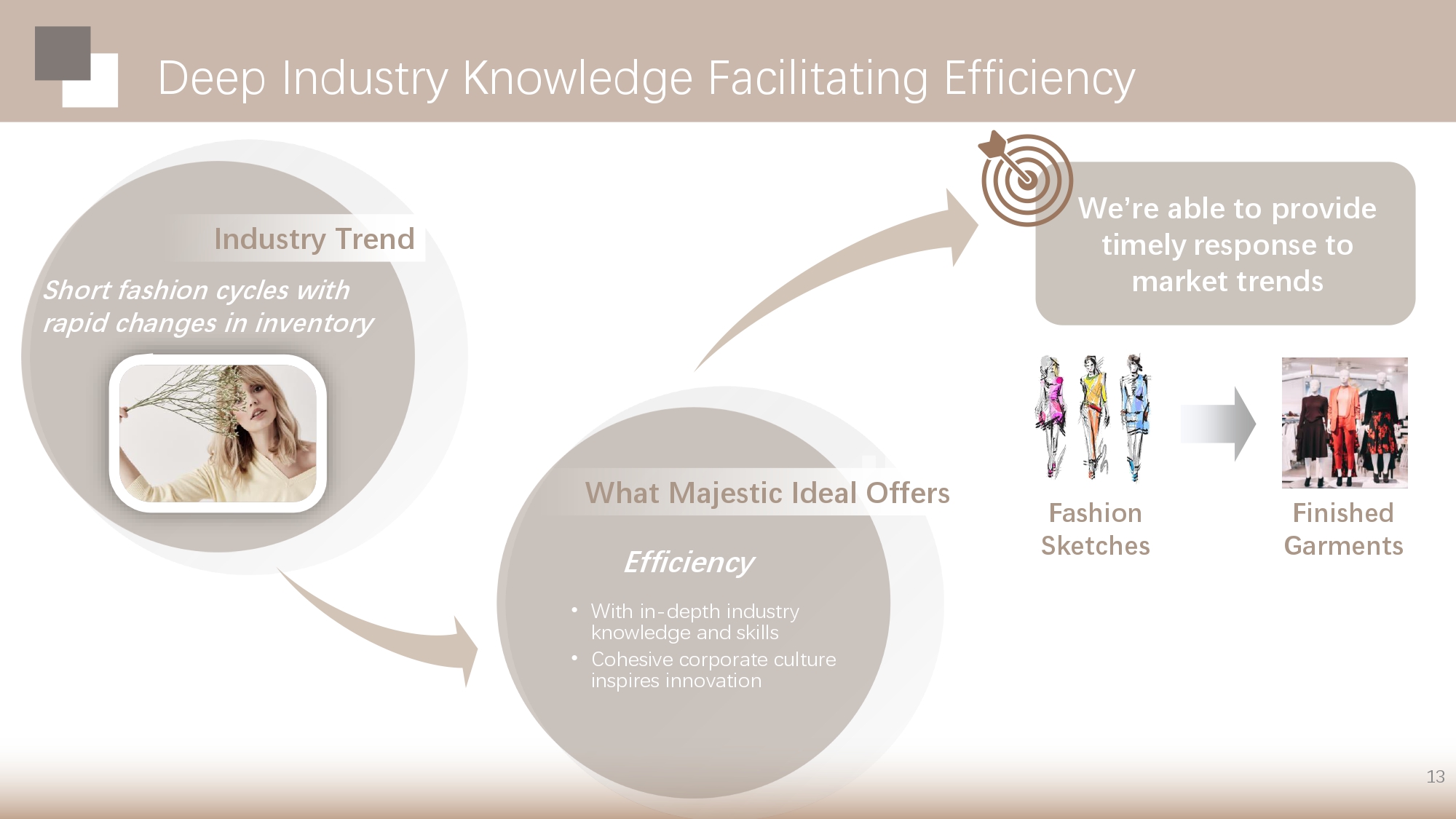 时尚速写效率•拥有深入的行业知识和技能•凝聚的企业文化激发创新成品服装深厚的行业知识促进效率短时尚周期与库存的快速变化我们能够及时响应市场趋势行业趋势Majestic Ideal提供什么13