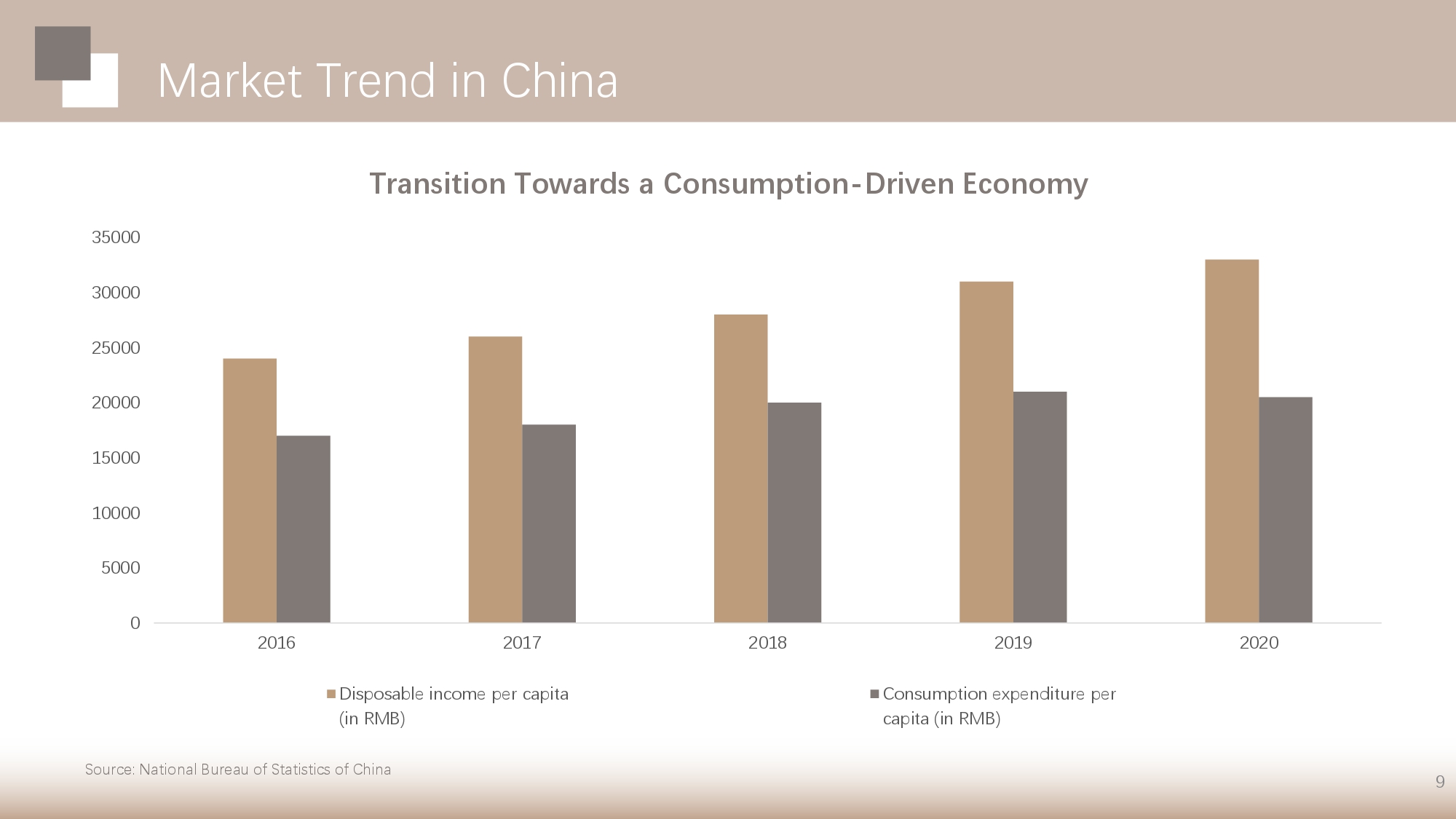 向消费拉动型经济转型35000300002500020000150001000050000020162017201820192020人均可支配收入(人民币)人均消费支出(人民币)9来源:中国国家统计局中国市场趋势