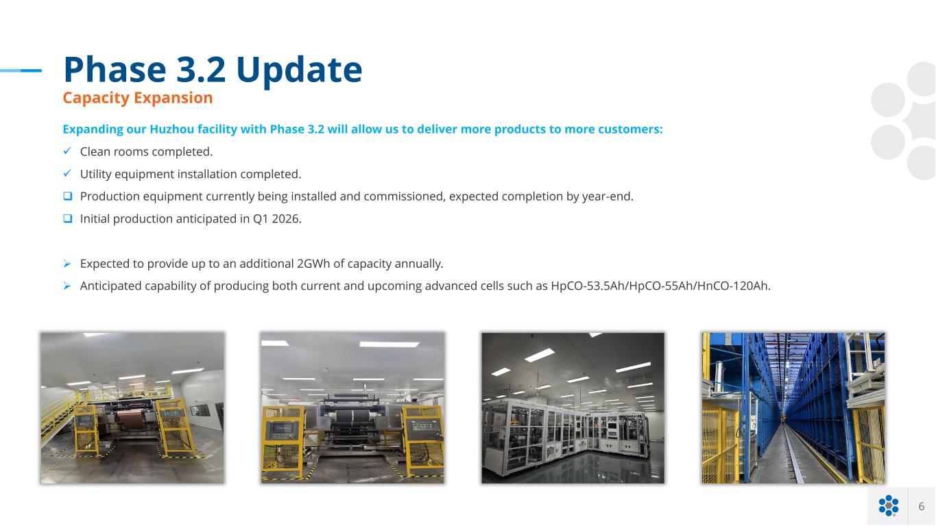 6第3.2阶段更新产能扩张通过第3.2阶段扩大我们的湖州工厂,将使我们能够向更多客户交付更多产品:ü洁净室完成。ü公用事业设备安装完成。q生产设备目前正在安装调试中,预计年底完工。q预计2026年Q1初步投产。Ø预计每年可额外提供高达2GWh的产能。Ø预期能够同时生产当前和即将推出的HPCO-53.5Ah/HPCO-55Ah/HNCO-120Ah等先进电池。