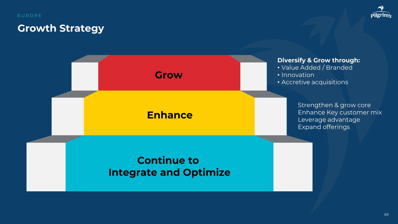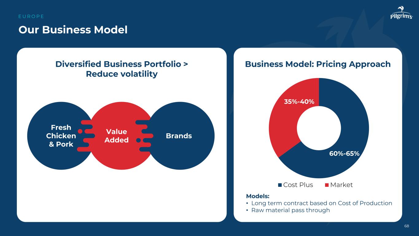 我们的商业模式E U R O P E调整后营业收入[ USD m ]新鲜鸡肉&猪肉增值品牌多元化业务组合>降低波动性60%-65 % 35%-40 %成本加成市场模型:•基于生产成本的长期合同•原材料直通商业模式:定价方式68
