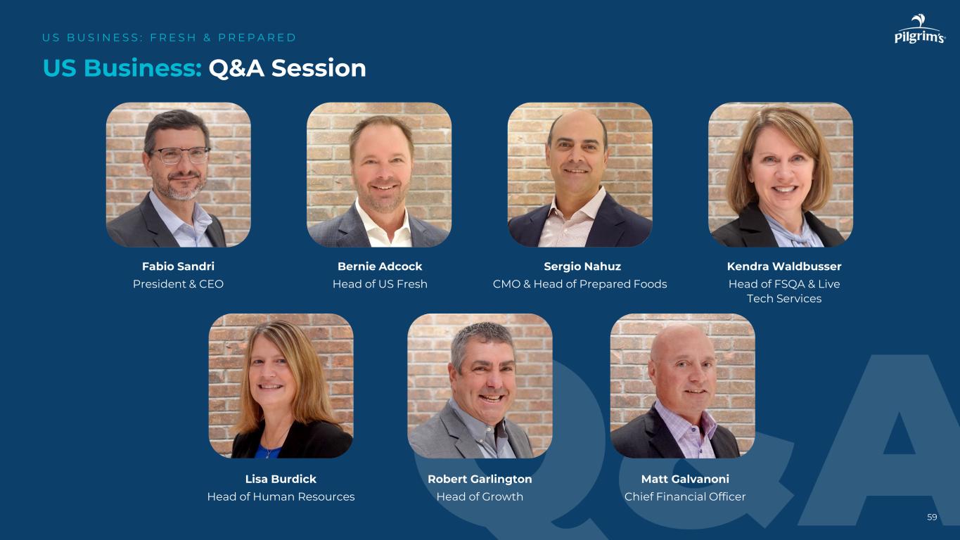 美国商业:问答环节US B US I N E S S:F R E S H & P R E P A R E D Fabio Sandri Bernie Adcock Sergio Nahuz Kendra Waldbusser总裁兼首席执行官美国生鲜CMO主管兼预制食品主管FSQA和现场技术服务主管Lisa Burdick Robert Garlington Matt Galvanoni人力资源主管增长主管丨首席财务官首席财务官 59