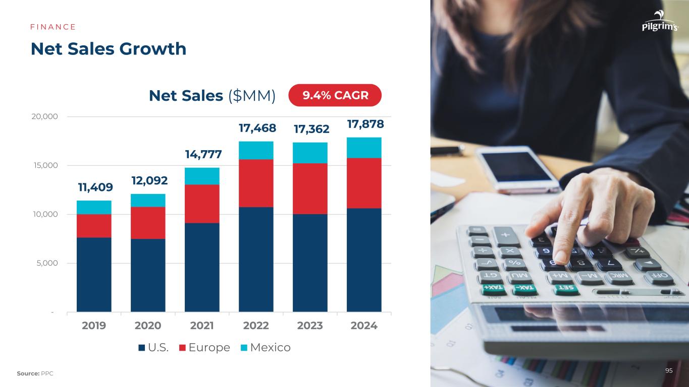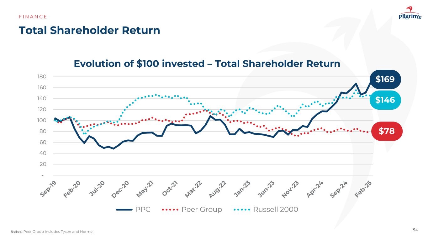 -20406080100120140160180 Evolution of $ 100 invested – Total Shareholder Return PPC Peer Group Russell 2000 Total Shareholder Return F I N A N C E 94注:Peer Group includes Tyson and Hormel $ 169 $ 78 $ 146
