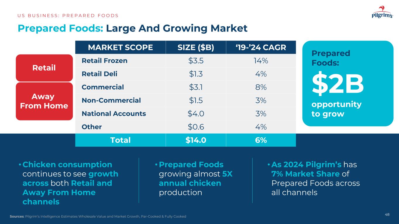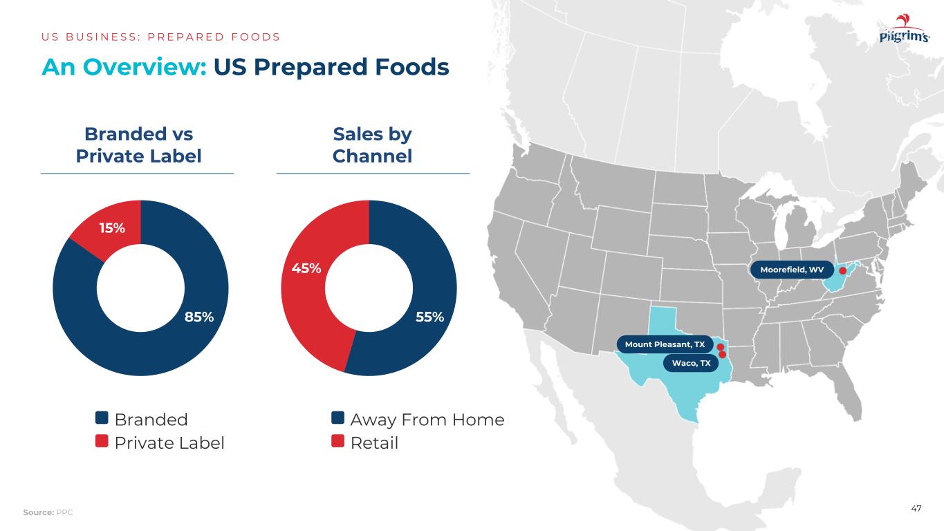 85% 15% 45% 55% AN综述:美国预制食品US B US US N E S S:P R E P A R E D F O O D S 47品牌vs自有品牌销售按渠道自有品牌品牌品牌零售远离Home Mount Pleasant,TX Moorefield,WV Waco,TX来源:PPC